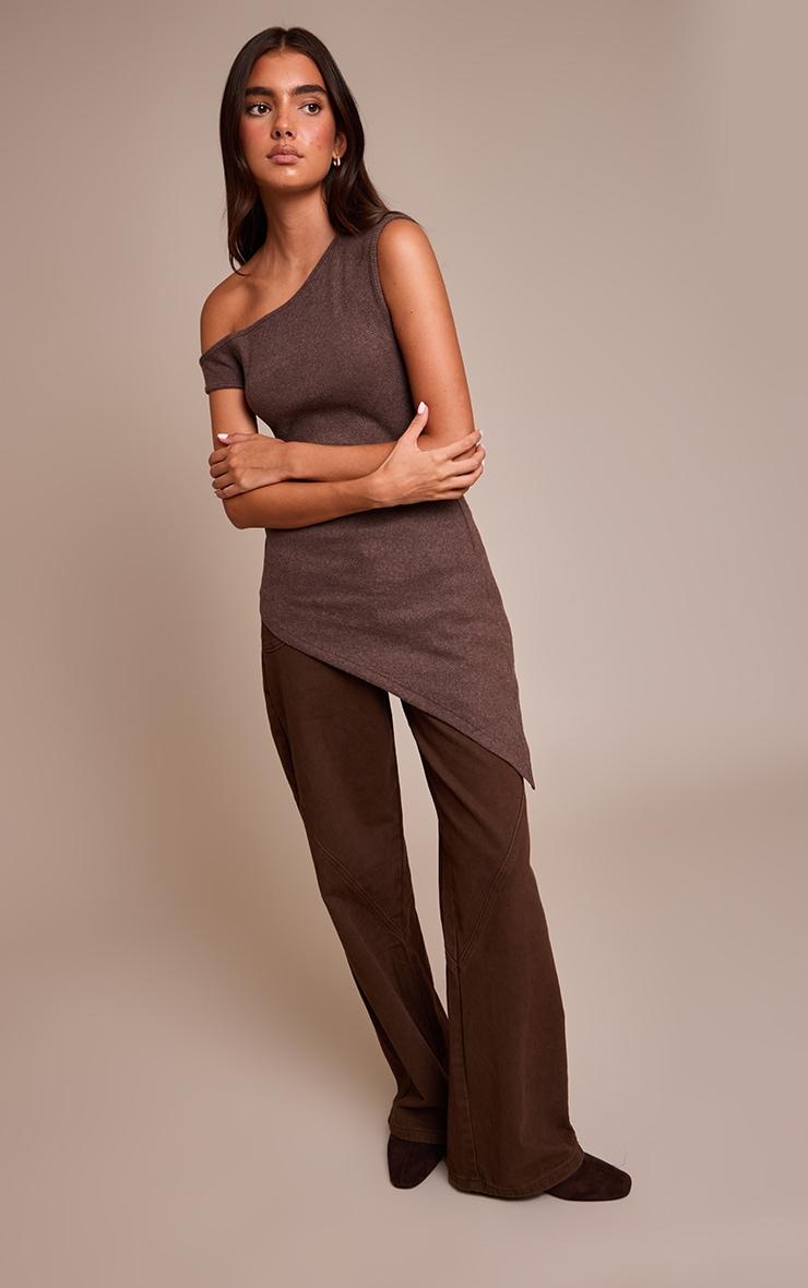 Stay sleek in the chocolate thick brushed rib longline asymmetric top. Made from a chocolate thick brushed rib material, it features an asymmetric cut, longline fit, and flattering silhouette. Pair with kitten heels and gold earrings for an effortlessly chic finish.Length approx 48.5cm/19inch (Based on sample size US 4)Model wears size UK 8/ EU 36/ AUS 8/ US 4Model Height - 5ft 7inchp]:!mb-4inch>Brand: PrettyLittleThingCategory: TopsProduct type: Bardot TopColor: ChocolateMaterial: Brushed RibSleeves: SleevelessOccasion: Day