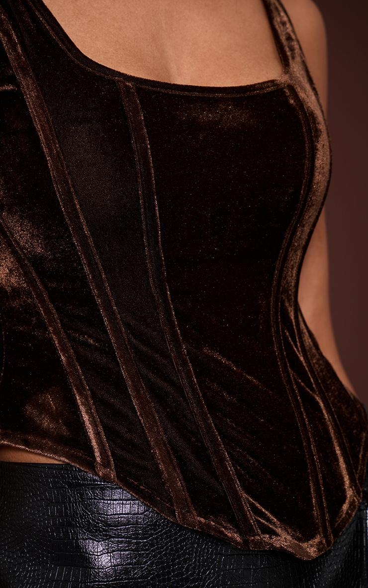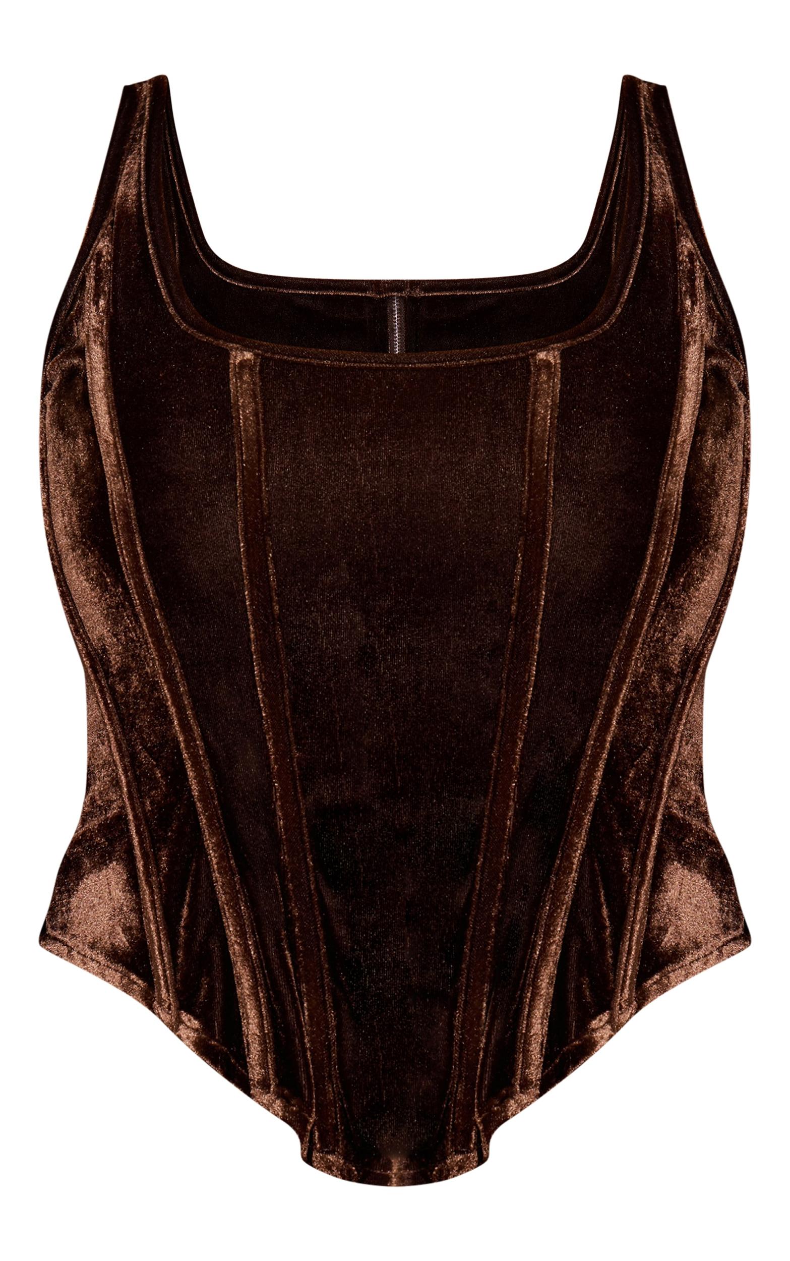 Add luxury to your wardrobe with the chocolate velvet boned dip hem longline corset. Made from plush velvet in a deep chocolate tone, this corset features boned structure and a dip hem for a flattering silhouette. Pair with tailored pants and heels for a sophisticated evening look.Length approx 48.5cm/19inch (Based on sample size US 4)Model wears size UK 8/ EU 36/ AUS 8/ US 4Model Height - 5ft 9inchp]:!mb-4inch>Brand: PrettyLittleThingCategory: TopsProduct type: CorsetColor: ChocolateMaterial: VelvetOccasion: Evening