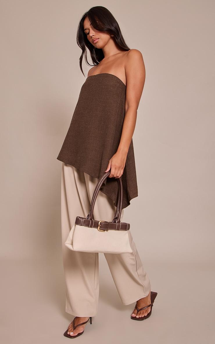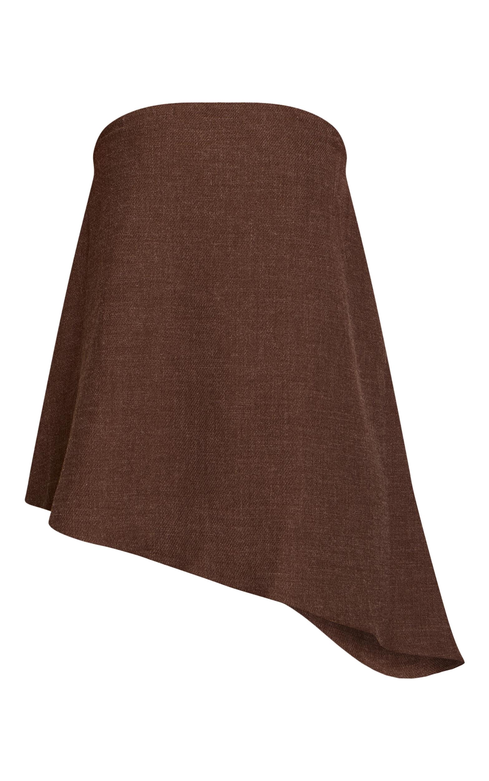 An artfully draped design delivers instant impact this season with the chocolate woven bandeau asymmetric hem long top. This essential piece presents a sleek, strapless bandeau neckline, leading to an effortlessly flowing A-line silhouette that boasts a distinctive asymmetric hem, offering a modern longline cut. Perfect for evening, pair this chocolate top with high-waisted tailored pants and sharp pointed heels. Complete the knowing ensemble with elegant gold earrings, ensuring a confident, fashion-forward statement.Length approx 34.5cm/13.5inch (Based on sample size US 4)Model wears size UK 8/ EU 36/ AUS 8/ US 4Model Height - 5ft 7inchp]:!mb-4inch>Brand: PrettyLittleThingCategory: TopsProduct type: Cami TopColor: ChocolateMaterial: Tailored WovenOccasion: Evening