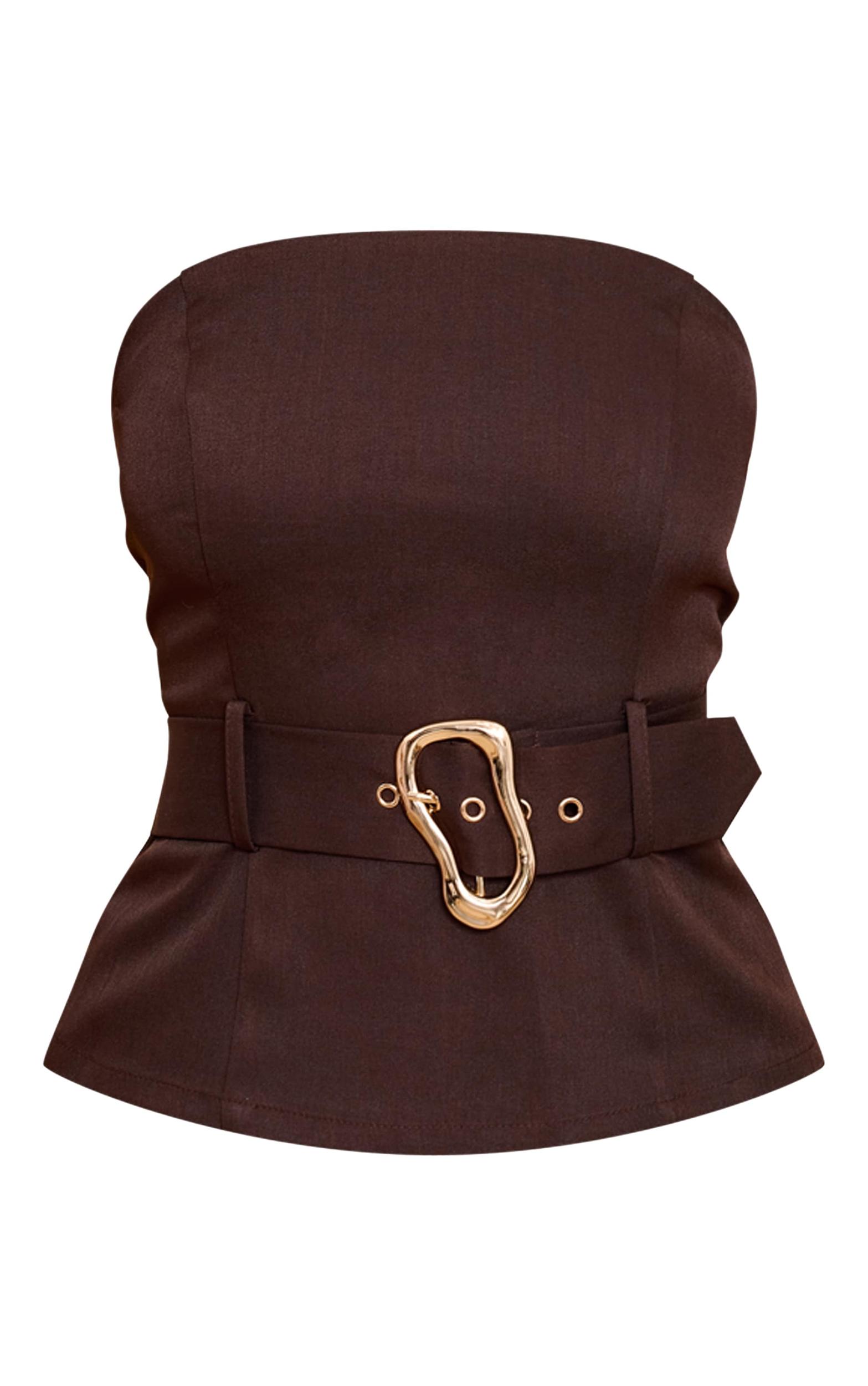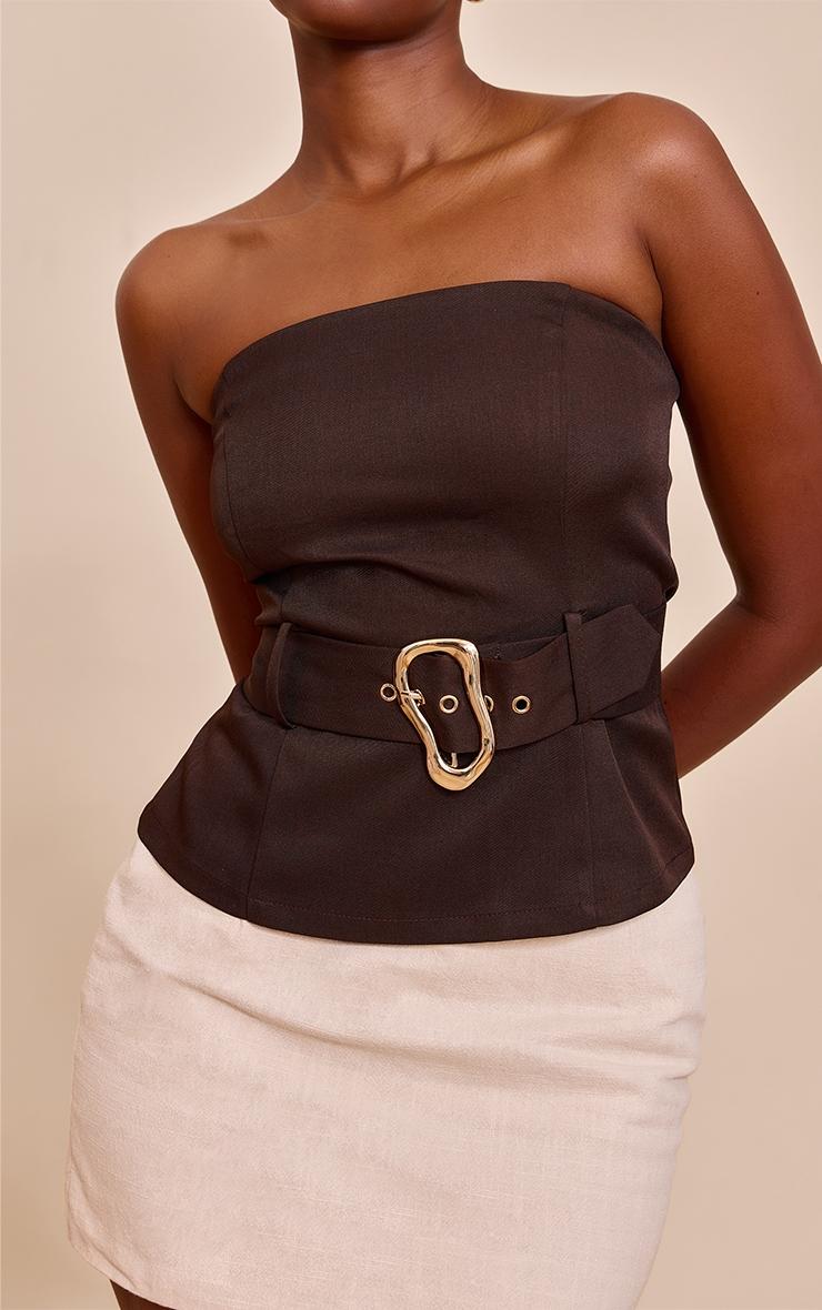 Go bold with the chocolate woven belted trim detail bandeau top. Featuring structured woven fabric, trim detailing, and a waist-cinching belt, this top flatters the silhouette while staying trendy. Pair with a mini skirt or high-waisted pants for a put-together finish.Length approx 34.5cm/13.5inch (Based on sample size US 4)Model wears size UK 8/ EU 36/ AUS 8/ US 4Model Height - 5ft 9inchp]:!mb-4inch>Brand: PrettyLittleThingCategory: TopsProduct type: Bandeau TopColor: ChocolateMaterial: Tailored WovenDesign: PlainOccasion: Day