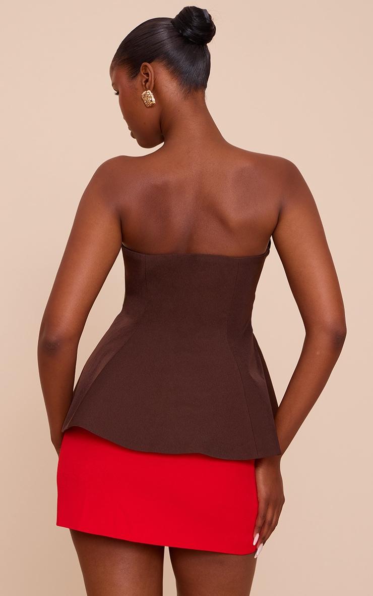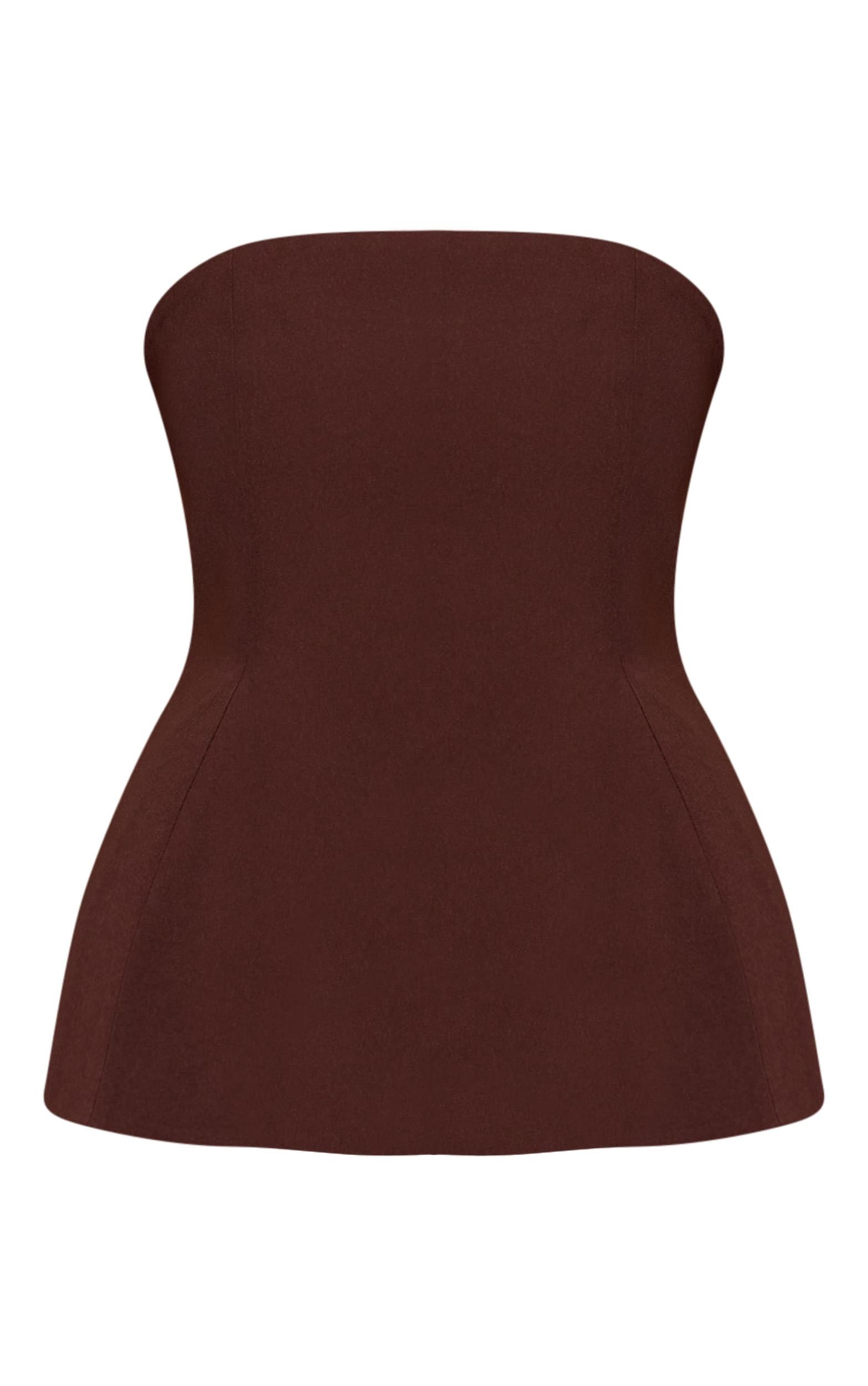 Choose a classic silhouette with this chocolate woven structured peplum bandeau top. Made from deep brown material, this top has a bandeau neckline and a feminine peplum design. For a sleek look, add this top to a vibrant mini skirt and neutral toned kitten heels.Length approx 34.5cm/13.5inch (Based on sample size US 4)Model wears size UK 8/ EU 36/ AUS 8/ US 4Model Height - 5ft 9inchp]:!mb-4inch>Brand: PrettyLittleThingCategory: TopsProduct type: Bandeau TopColor: ChocolateMaterial: Tailored WovenDesign: PlainOccasion: Day