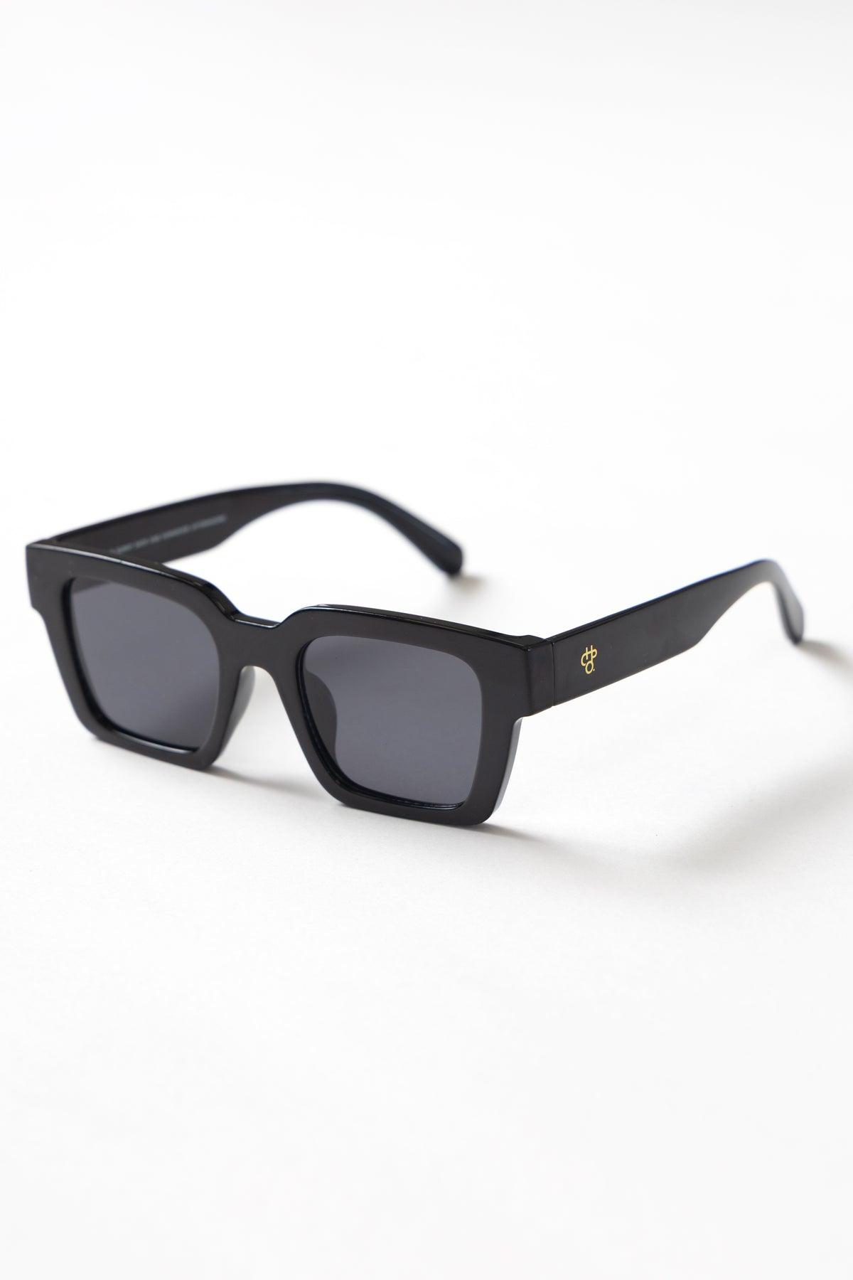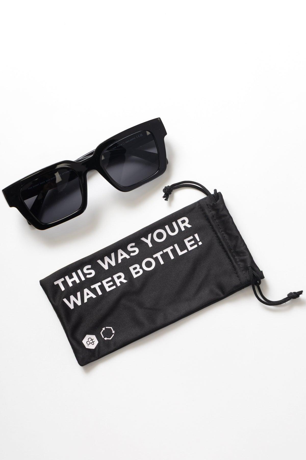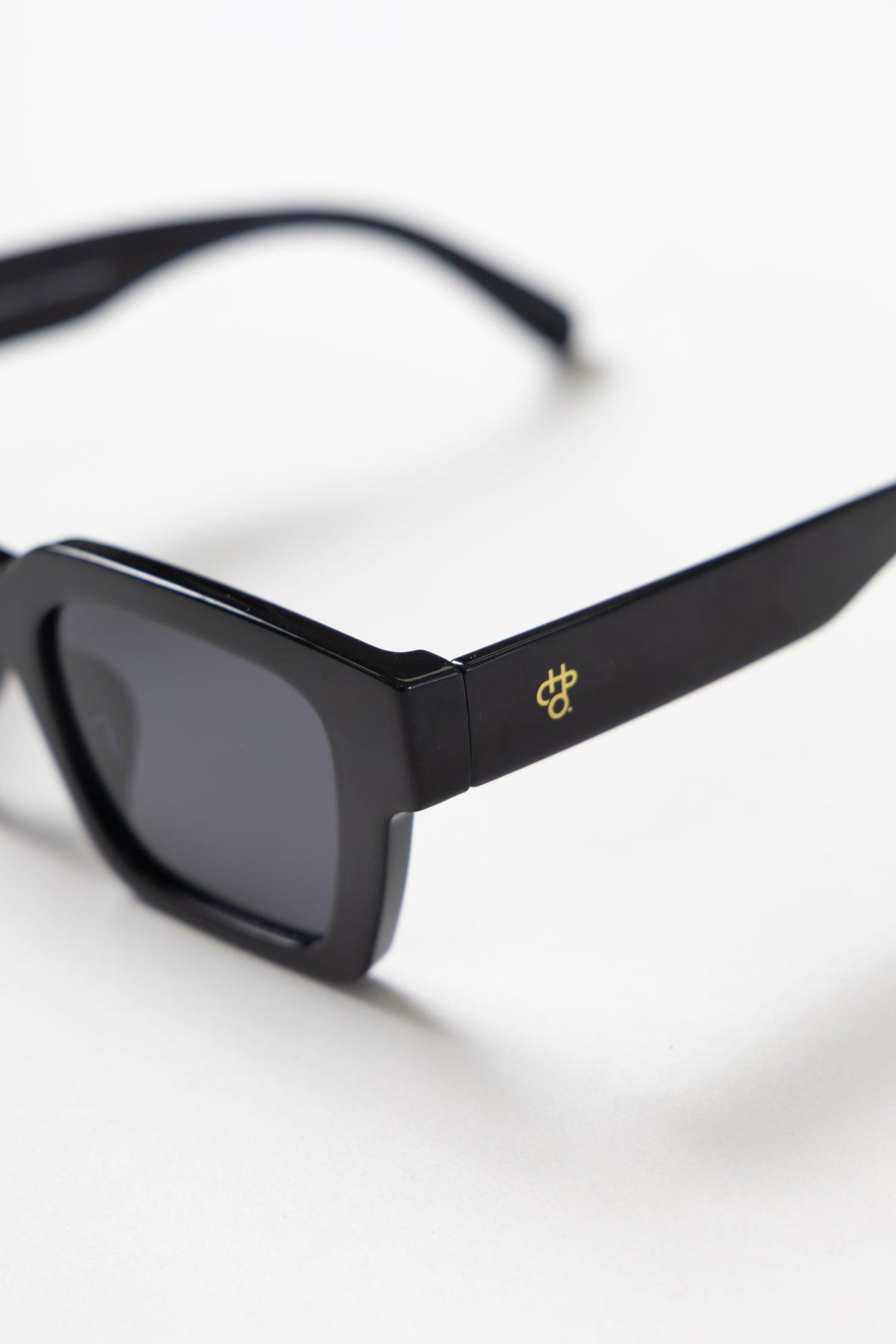 Max sunglasses by CHPO in black, unisex, UV400 protection, made from 100% recycled plastic, CHPO branding on side, lens colour black, frame colour black Height 50mm Width 150mm Bridge 18mm
