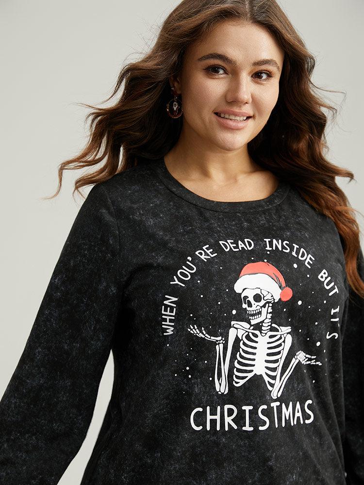Shop Christmas Vintage Skull Print Crew Neck Sweatshirt now and redefine your style with confidence at BloomChic. Tailored for mid and plus-size women. This trendy Tops Women, sizes 10-30. Color:Black;Style:Casual;Pattern Type:Christmas;Details:Printed, Elastic cuffs;Belt:No-belt