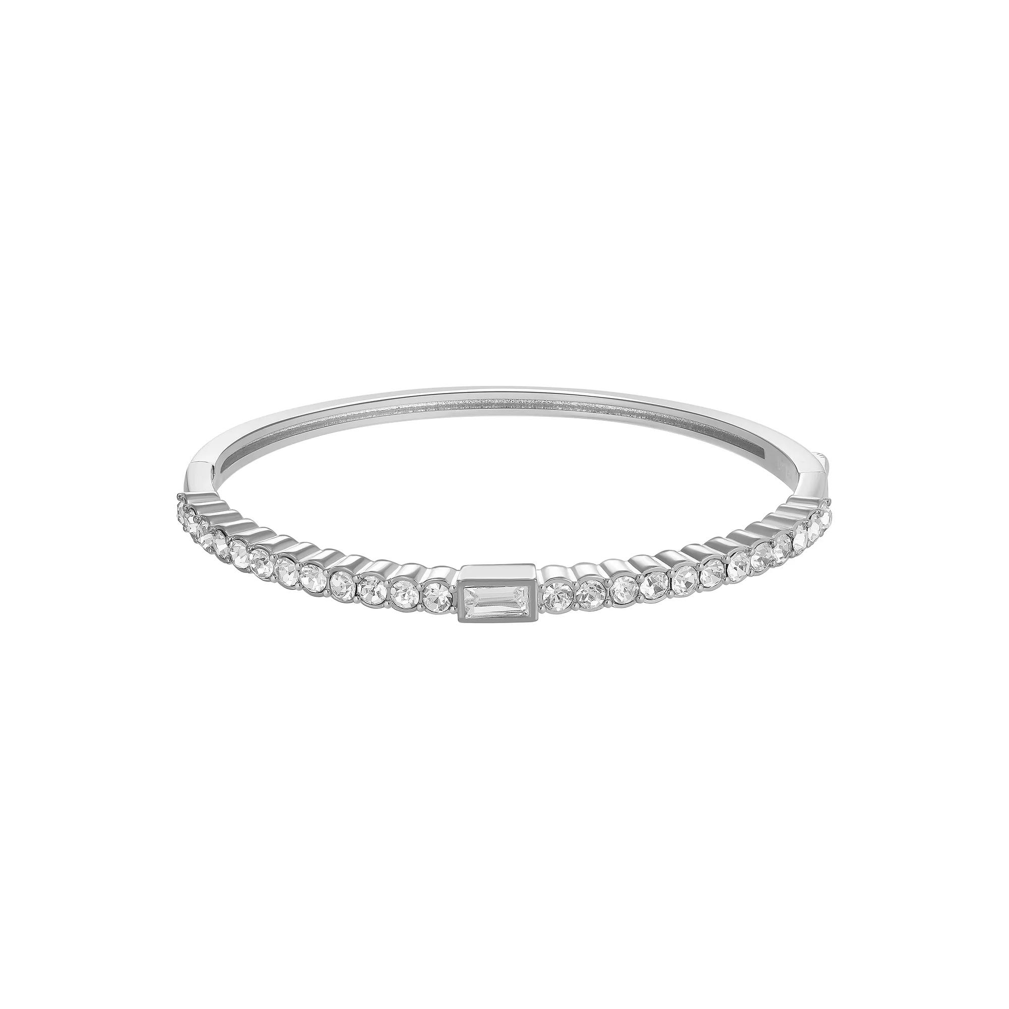 Accent your look with this Chrystina crystal baguette center hinged bangle bracelet. Click on this JEWELRY & WATCHES GUIDE to learn about fit, styles, materials and more! Accent your look with this Chrystina crystal baguette center hinged bangle bracelet. Click on this JEWELRY & WATCHES GUIDE to learn about fit, styles, materials and more! FEATURES Length: 7.5 in. Nickel free Metal: brass Plating: gold tone, fine silver, silver tone Finish: polished Packaging: boxed Crystal accents Size: 7.5". Gender: female. Age Group: adult.