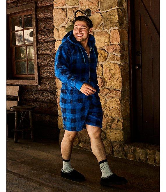 From Chubbies, this onesie features: Buffalo-plaid design Attached hood with drawstring Long sleeves Zip-front closure Two front pockets Attached shorts Provides warmth without the bulk Midweight 5.5" inseam High-pile fleece polyester Machine wash/tumble dry Imported.