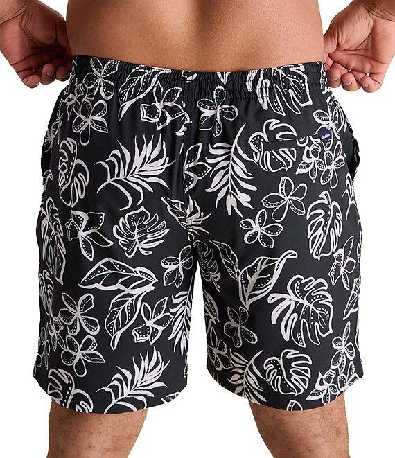 From Chubbies, these swim trunks feature: Palm leaf print Capped flexible drawstrings for extra support with elastic waist Two mesh side pockets for extra drainage and a back zipper pocket Stretch mesh basket liner for comfortability to the max 7" inseam UPF 50+ 4-way stretch Polyester/spandex Machine wash/tumble dry Imported.