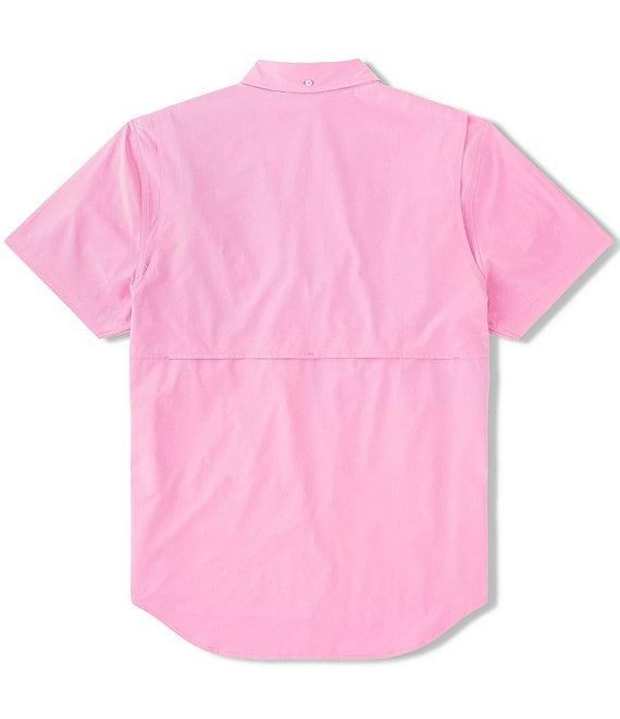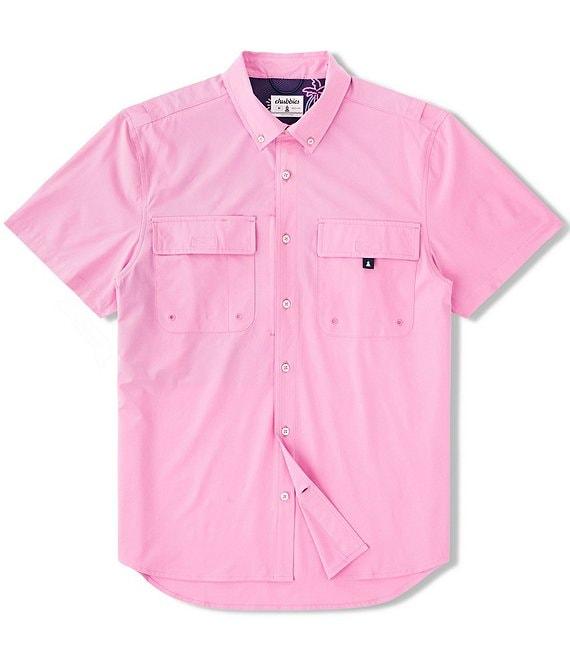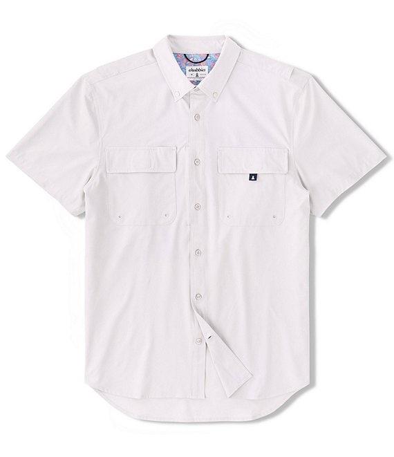 From Chubbies, this shirt features: Button-down collar Short sleeves Button-front Loose fit Vented back mesh Double-breasted velcro pockets Hidden pen pocket Technology: UPF 50+Moisture wicking Quick drying Polyester/spandex Machine wash/tumble dry Imported.