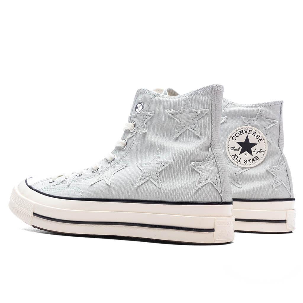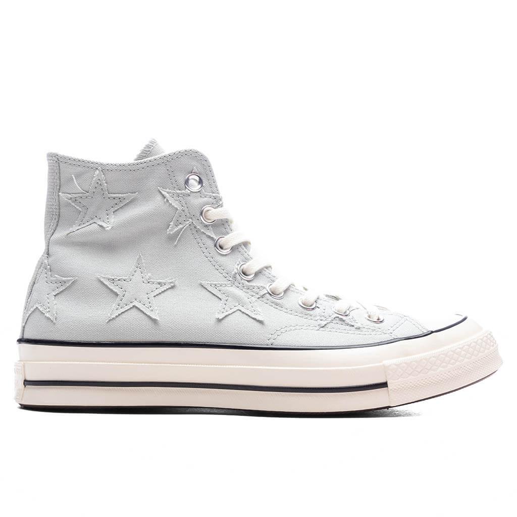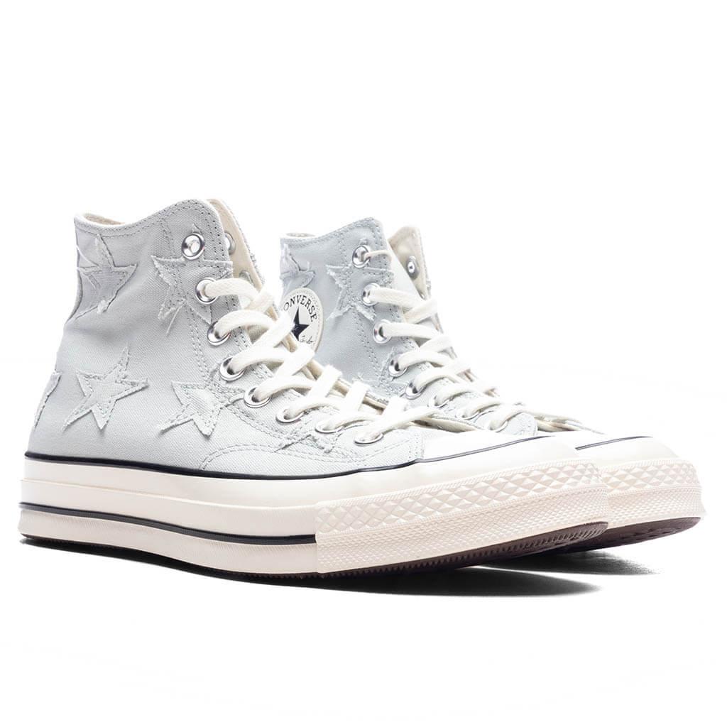 The Chuck 70 Hi brings bold energy to a timeless silhouette. Featuring a classic canvas upper with a star design, this high-top is finished with heritage details like the iconic ankle patch and All Star license plate. OrthoLite cushioning adds step-in comfort, keeping the legacy look grounded in modern comfort. Canvas upper OrthoLite cushioning Glossy midsole Iconic Chuck Taylor ankle patch All sizes are listed in U.S. Mens sizing unless stated otherwise Style No: A15546C