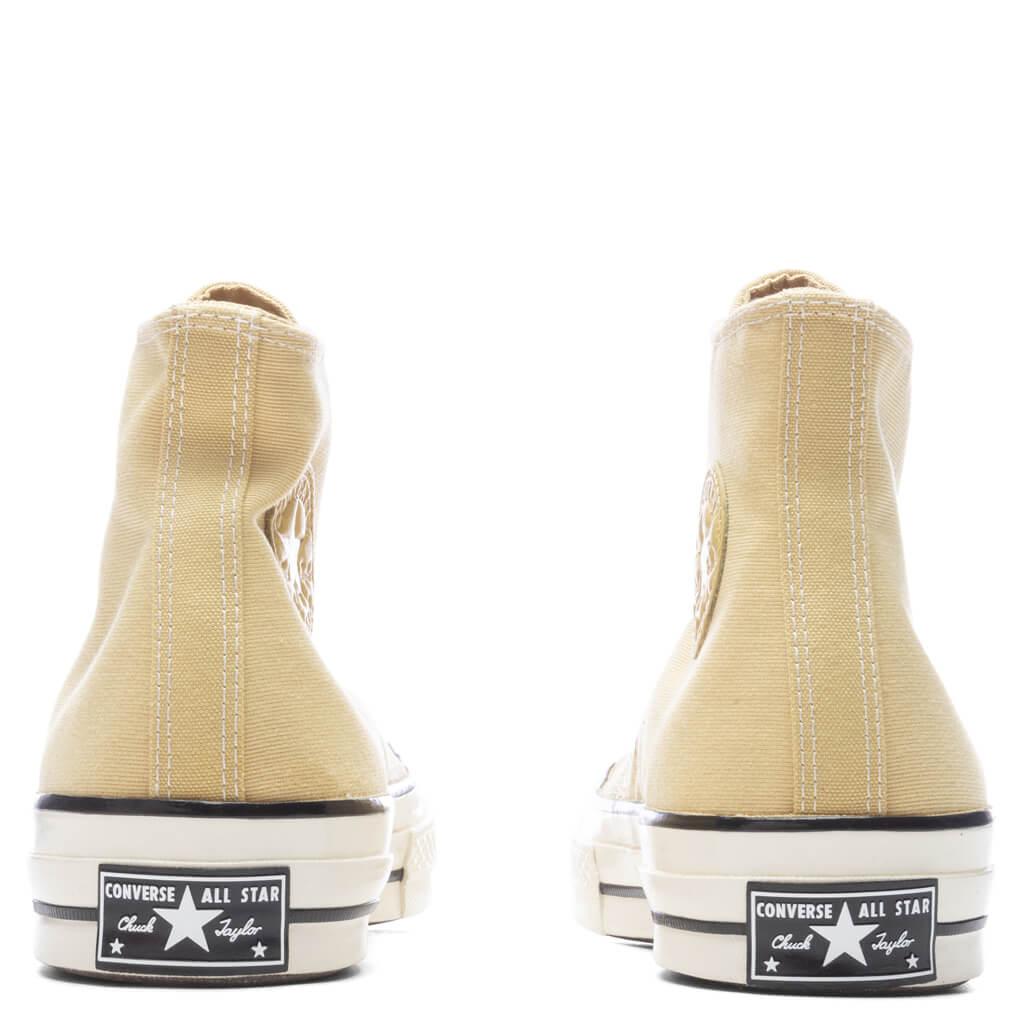 The Converse Chuck 70 Hi makes a statement in any sneaker collection. The design features a high-top silhouette along with a premium canvas upper. The sneaker features a winged tongue stitching and vintage star ankle patch for added dimension. The archive-inspired and glossy egret midsole, Ortholite insole cushioning, and rubber outsole complete the design. Canvas upper High-top Winged tongue stitching Vintage star ankle patch Glossy midsole Ortholite insole cushioning Rubber outsole All sizes are listed in U.S. Men’s sizing unless stated otherwise Style No: A03436C