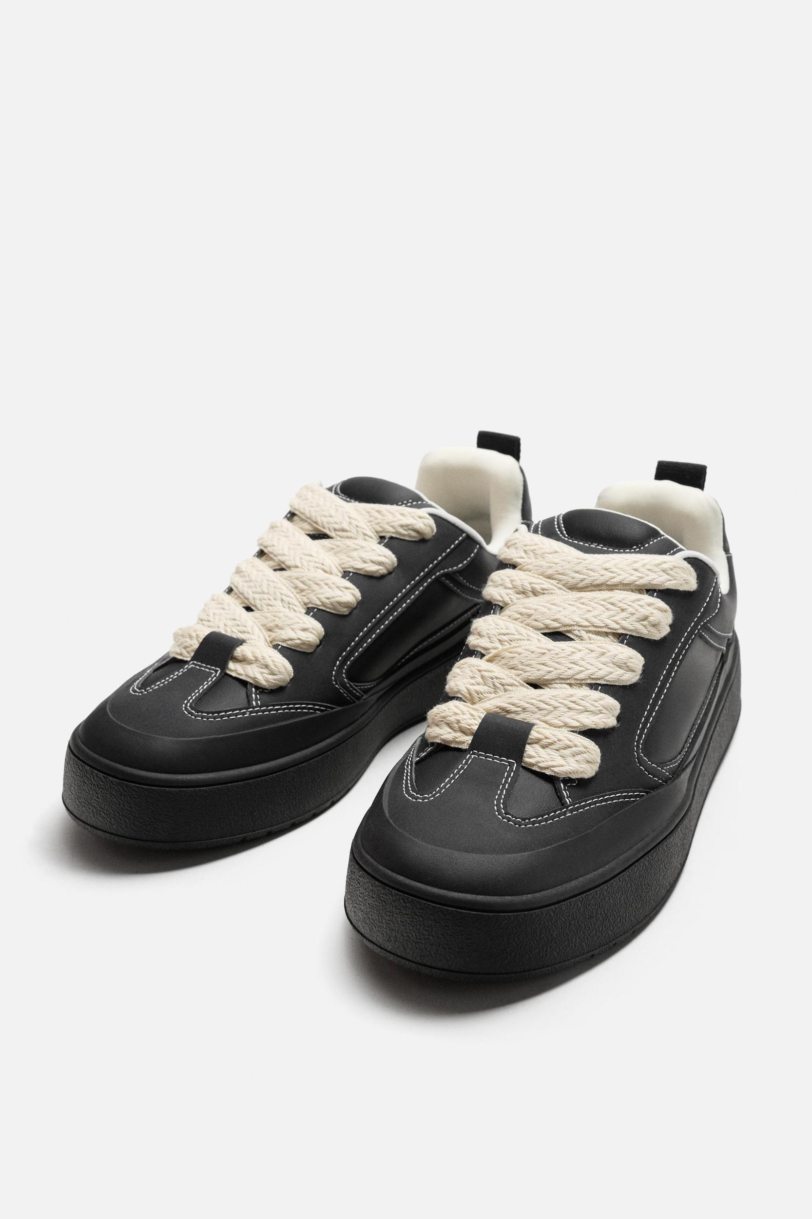 Skate-style sneakers. Upper made in a combination of pieces and materials. Maxi lace detail. Chunky sole.
