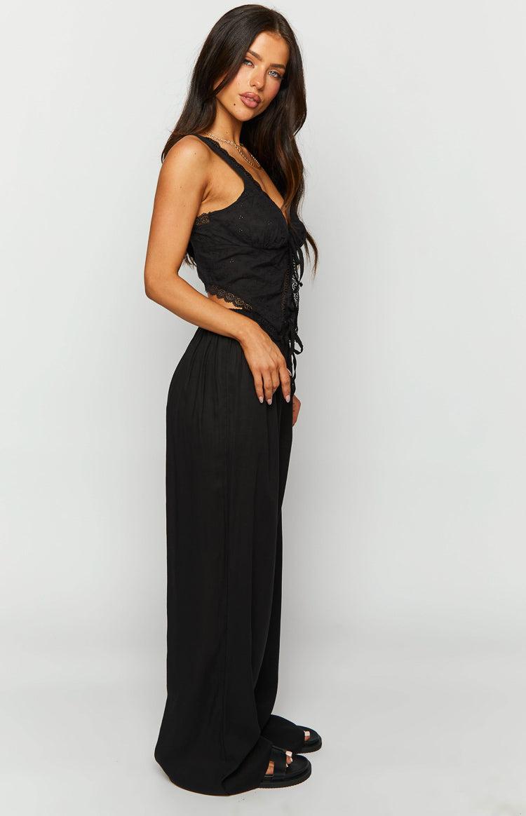 Black Drawstring PantsHow to style: Get ready for comfort and style with these Cici Black Drawstring Pants. The lightweight material and elastic waistband make for a comfortable fit. Style withe bikinis and sandals for a beach vacation.Features: Light weight material Unlined and slightly sheer Full length Straight leg Elastic waistband Drawstring and adjustable waist tie Non stretch material Mid rise fit Pull on design