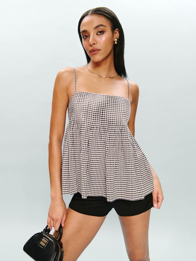 Up top. Shop the Cici Top from Reformation, a sleeveless babydoll-style top with a straight neckline and peplum silhouette.