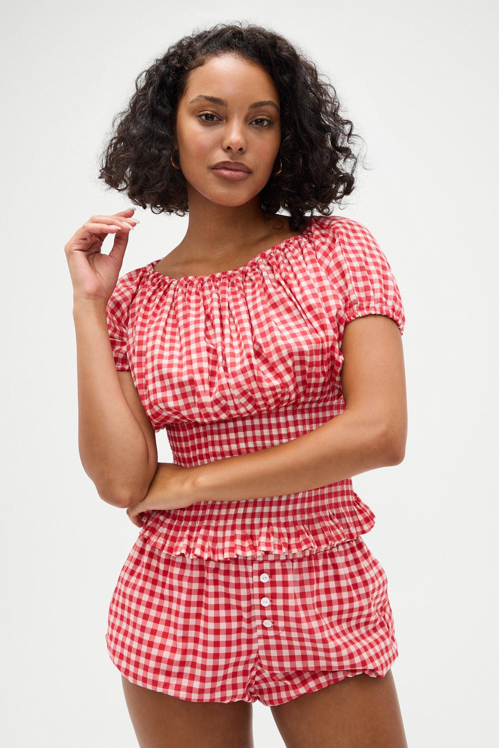 With fully pin-tucked details, the Cider blouse in Cherry Gingham offers a one-of-a-kind look for garden parties, city strolls, and beyond. The customizable neckline and side zippers truly make the Cider blouse versatile for any occasion. Fabric 100% Cotton Gauze Model Size & Fit This style runs true to size Jasmine is wearing a size Small Height 5’9” (175cm) Bust 34" (86cm), Waist 23.5" (60cm), Hips 34” (86cm)