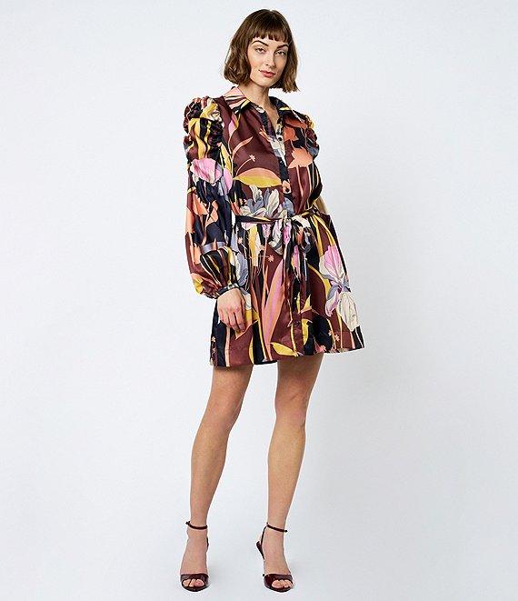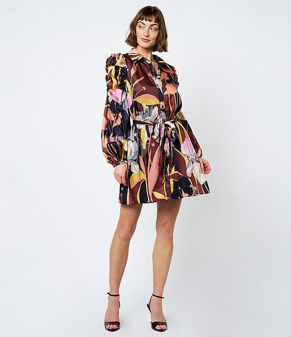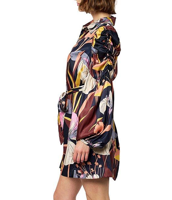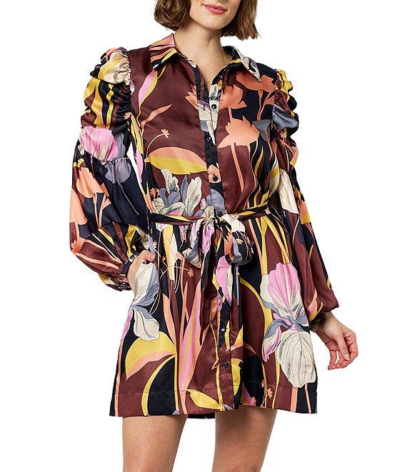 From CIEBON, this dress features: Satin fabrication Floral print Collared neckline Long ruched sleeves Center button front closure Button-down shirt dress silhouette Sleeve cuff detail Belt included Polyester Hand wash in cold water with similar colors Imported.