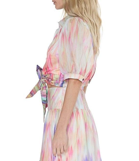CIEBON Gunhid Printed Voile Collar Neck Short Sleeve Tie Front Coordinating Top