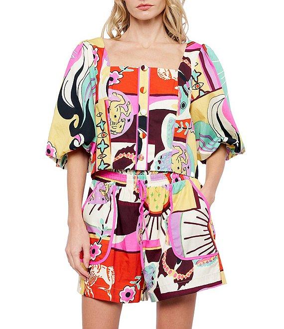 CIEBON Kaiya Printed Poplin Elastic High Waist Coordinating Shorts