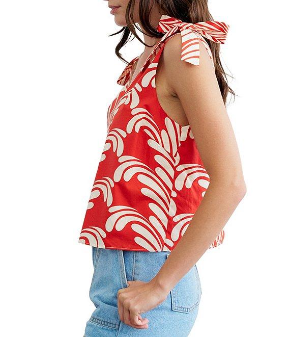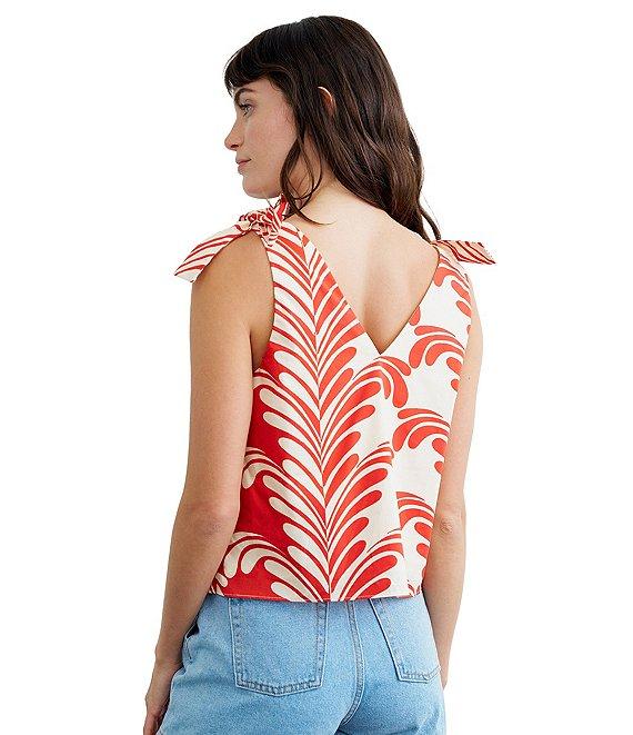 From CIEBON, this top features: Cotton poplin fabrication Printed Deep v-neckline Sleeveless Shoulder tie detail Pullover construction Straight hem Approx. 20" length Cotton Hand wash Imported.