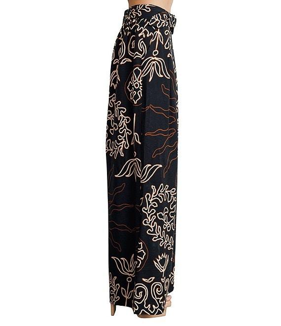 CIEBON Seleste Printed Woven High Waist Wide Leg Belted Coordinating Pants
