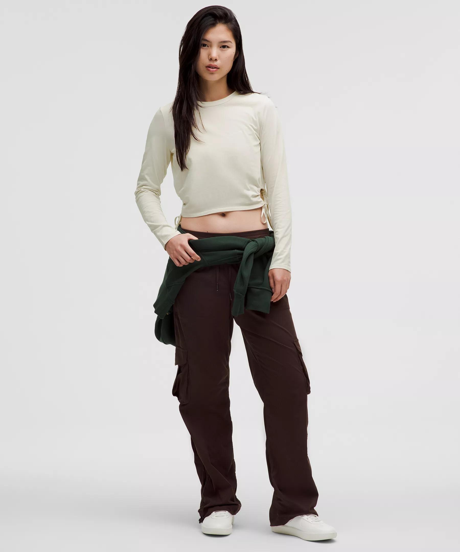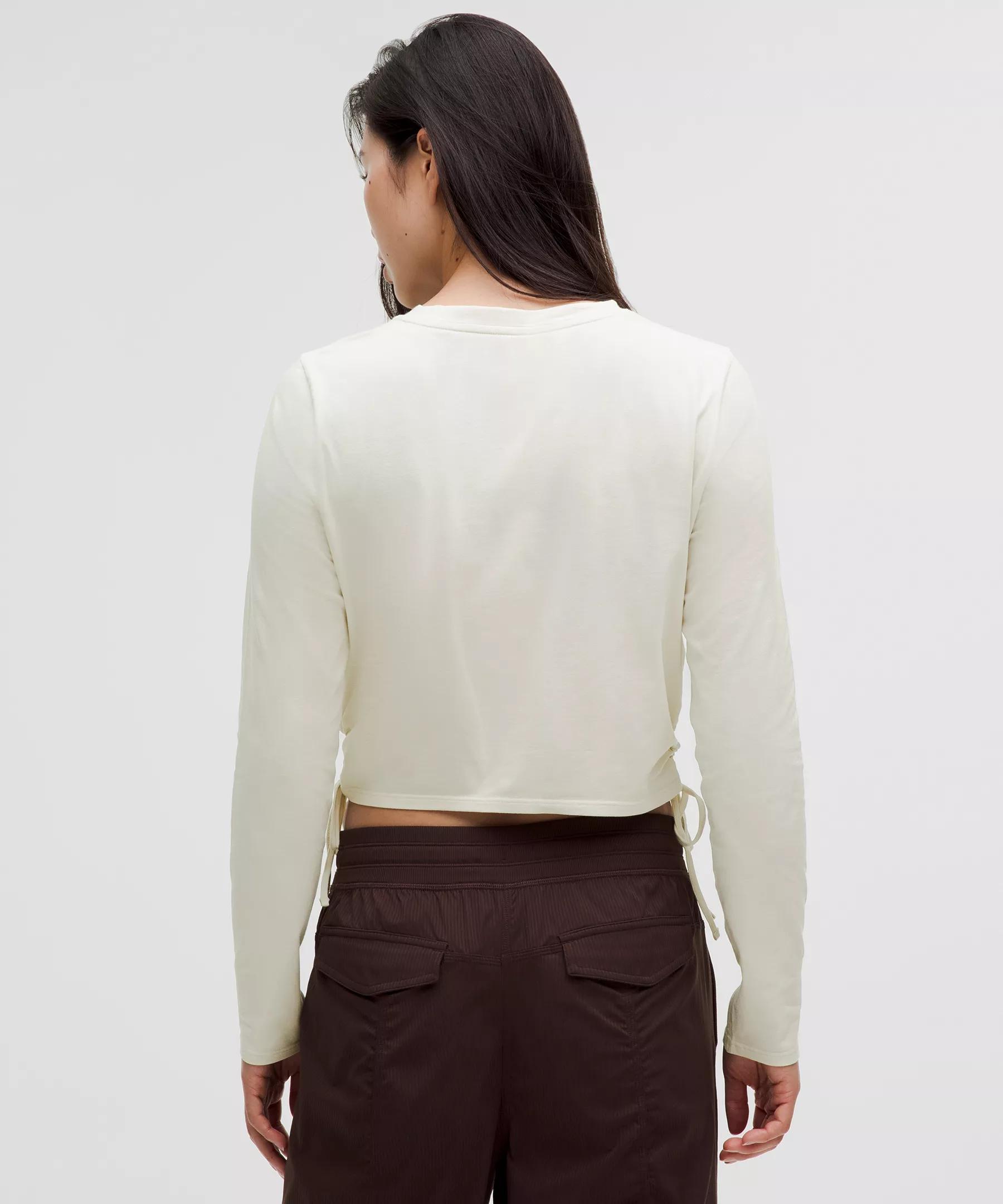 Softness in a cinch. This breathable organic cotton long sleeve features adjustable cutouts you can tie into bows.