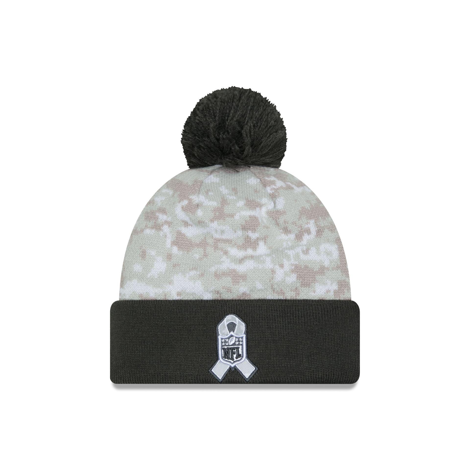 The Cincinnati Bengals 2024 Salute to Service Pom Knit features an embroidered Bengals logo at the front with the official NFL Salute to Service patch at the rear. Additional details include an snow camo fabrication, an American flag patch at the right-wear side, and a one-time removable pom.The NFL does not profit from the sale of Salute to Service products. Charitable contributions are awarded to the NFL's military nonprofit partners. For more information, please visit www.NFL.com/causes/Salute.