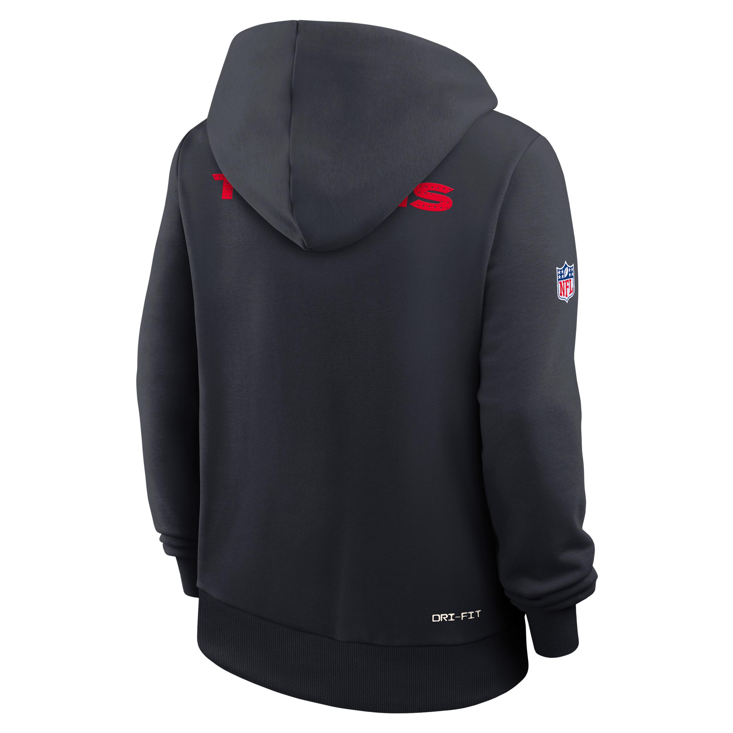 Featuring bold team graphics, this Sideline Hoodie combines sweat-wicking technology with a soft fleece lining to help you comfortably support the Atlanta Falcons in cooler weather. Benefits:Nike Dri-FIT technology moves sweat away from your skin for quicker evaporation, helping you stay dry and comfortable. Dolman sleeves help increase range of motion with a roomy fit under the arms. [] Product Details:Hood with drawstring. Front pocket. Zippered pocket at right side. 53% polyester/47% cotton. Machine wash. Imported. Style: 03C300A96; Color: Black; Size: S; Gender: Female; Age Group: Adult | Atlanta Falcons Sideline Women's Nike Dri-FIT NFL Pullover Hoodie in Black, Size: Small | 03C300A96-A0M