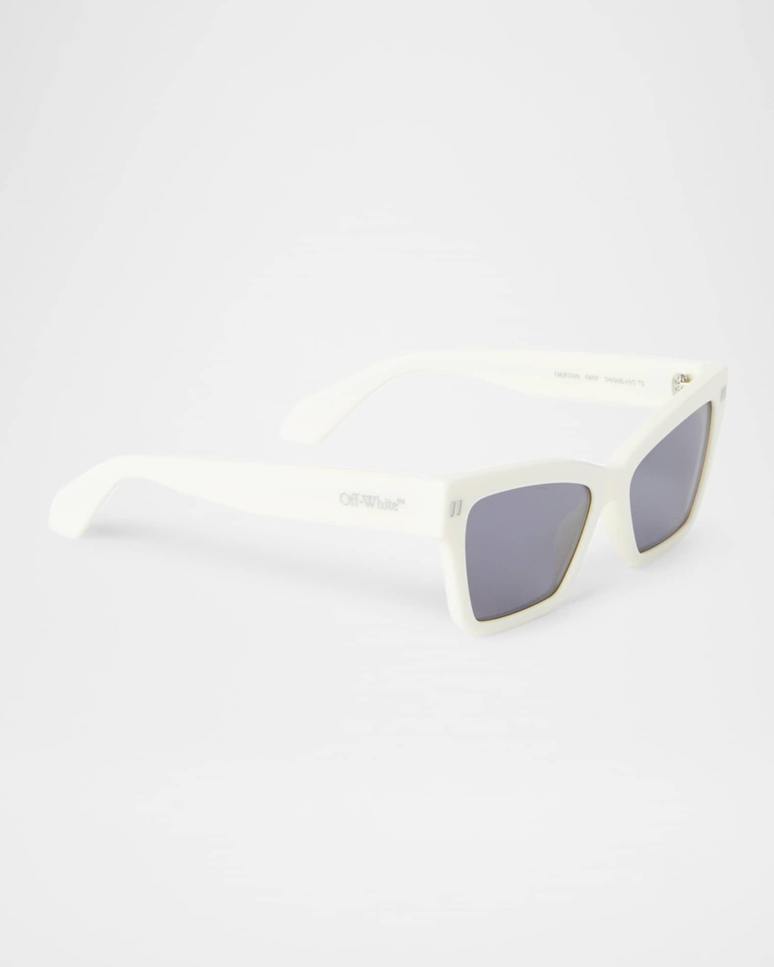 Off-White "Cincinnati" cat-eye sunglasses in acetate Eye/bridge/temple (in mm): 54-16-145 Solid lenses Saddle nose bridge Thin, tapered arms Classic logo at the temples Acetate 100% UVA/UVB protection Made in Italy Proposition 65 warning for California residents