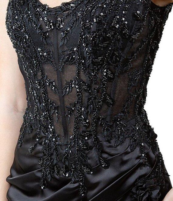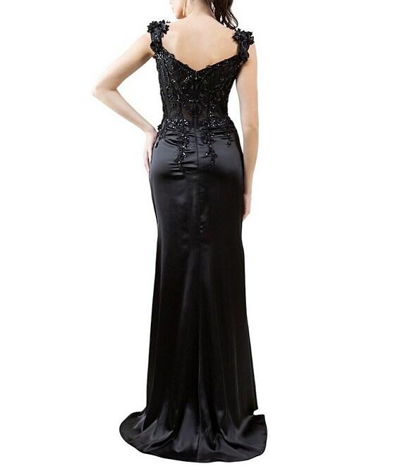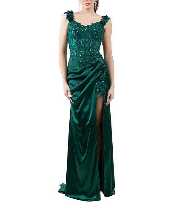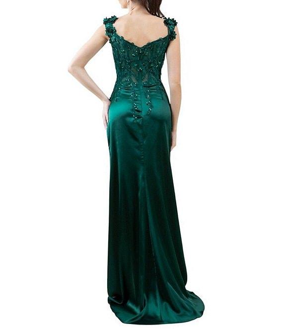 Cinderella Couture 3D Floral Beaded Lace Corseted Side Slit Dress