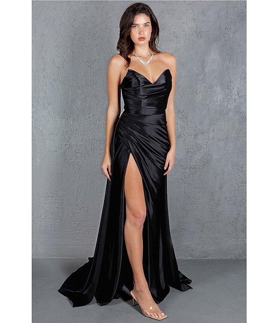 Cinderella Couture Satin Strapless Sweetheart Neck Side Slit Pleated Gown