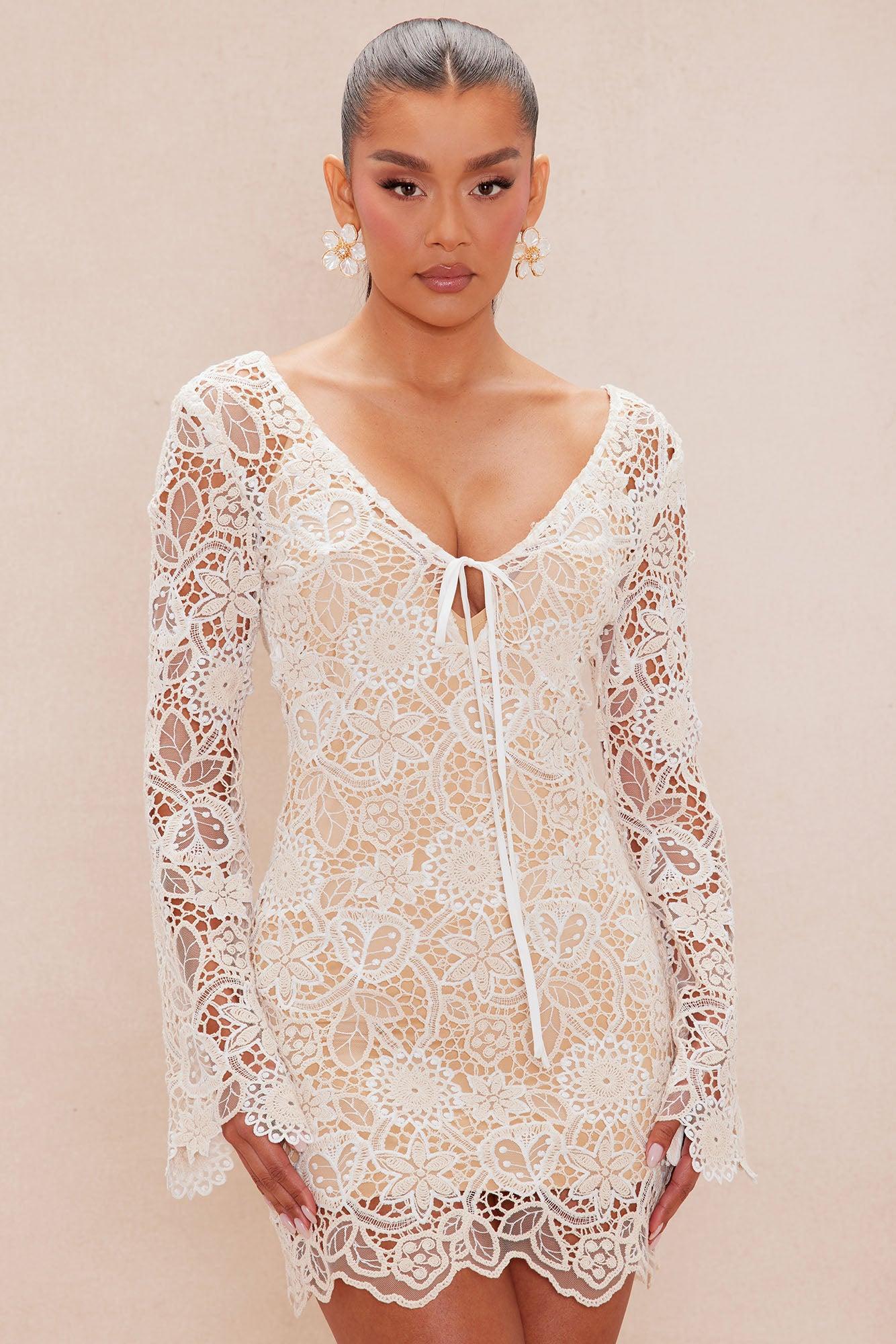 Cindy Crochet Mini Dress - Nude/combo