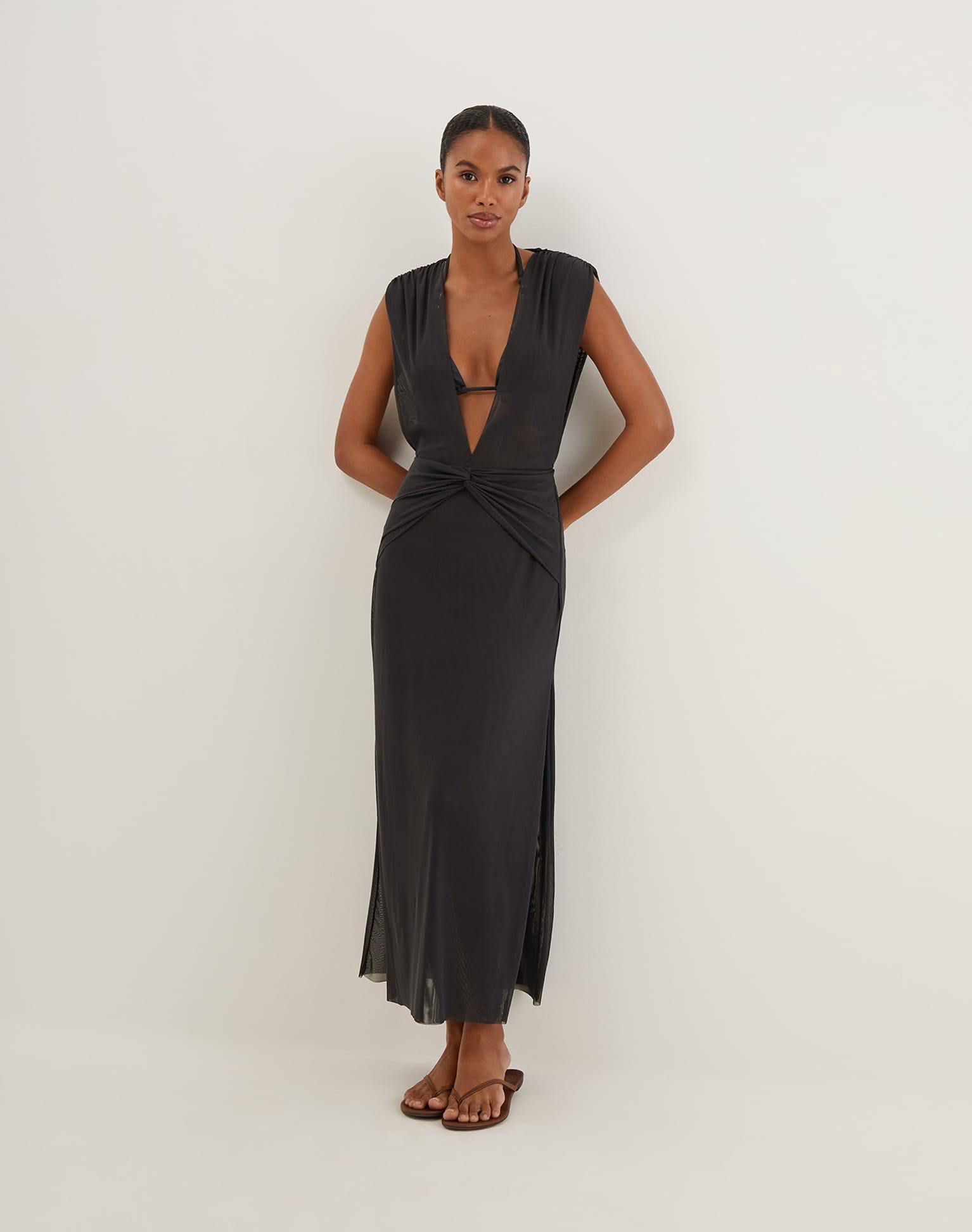 The ViX Cindy Long Cover Up is the perfect finishing touch to your sun-kissed look. This midi-style cover up dress is shaped with our mesh fabric that is butter soft to the touch. It features a plunging neckline with a gathered waist giving you an effortlessly form-fitting look for the beach and beyond. Style the Cindy