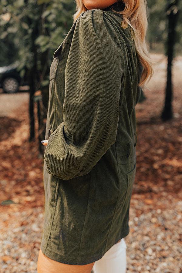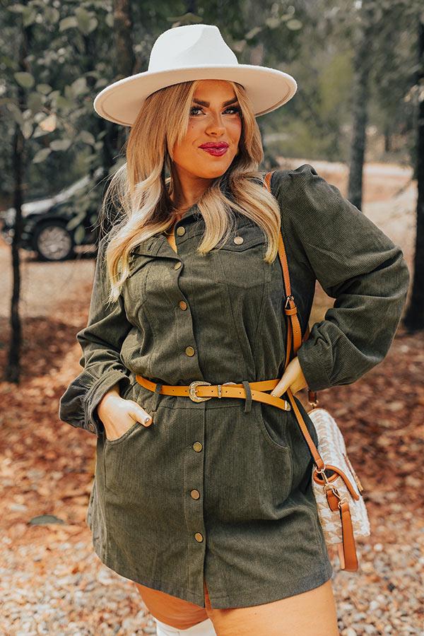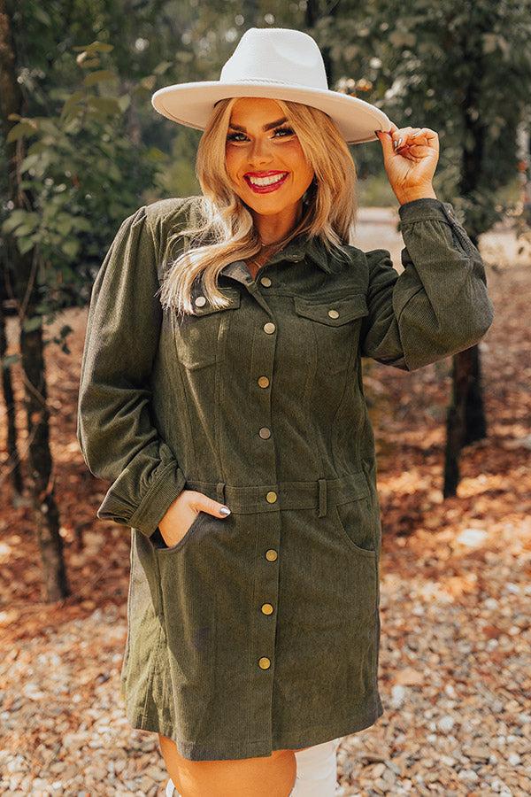 - Keep it on-trend with this corduroy cutie! - Unlined corduroy material - A collared neckline - A button-down front - Long, loose sleeves with button closure cuffs - Functional chest pockets as well as low side pockets and back pockets - A waistline featuring belt loops - A relaxed silhouette that ends in a straight mid-thigh length hemline