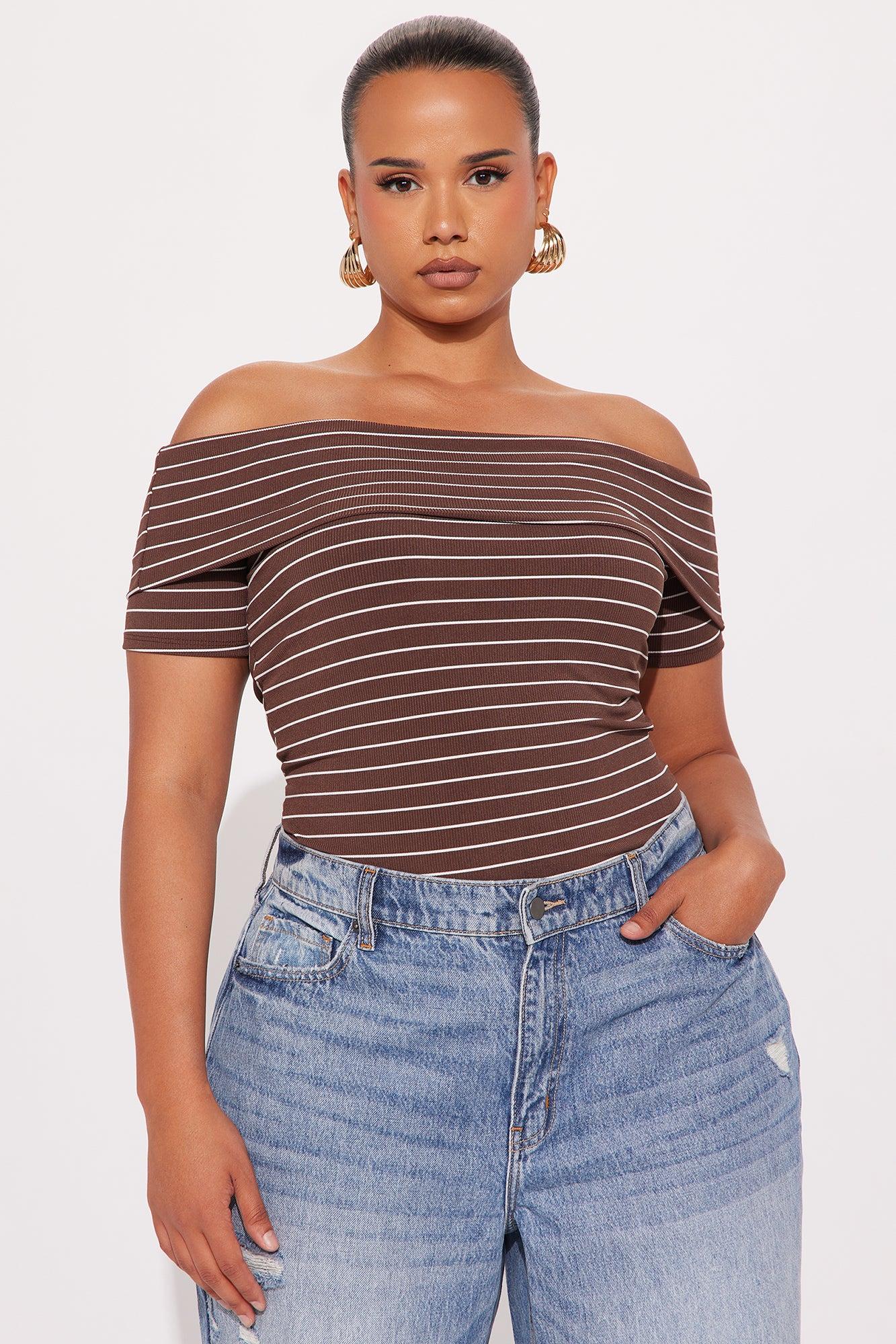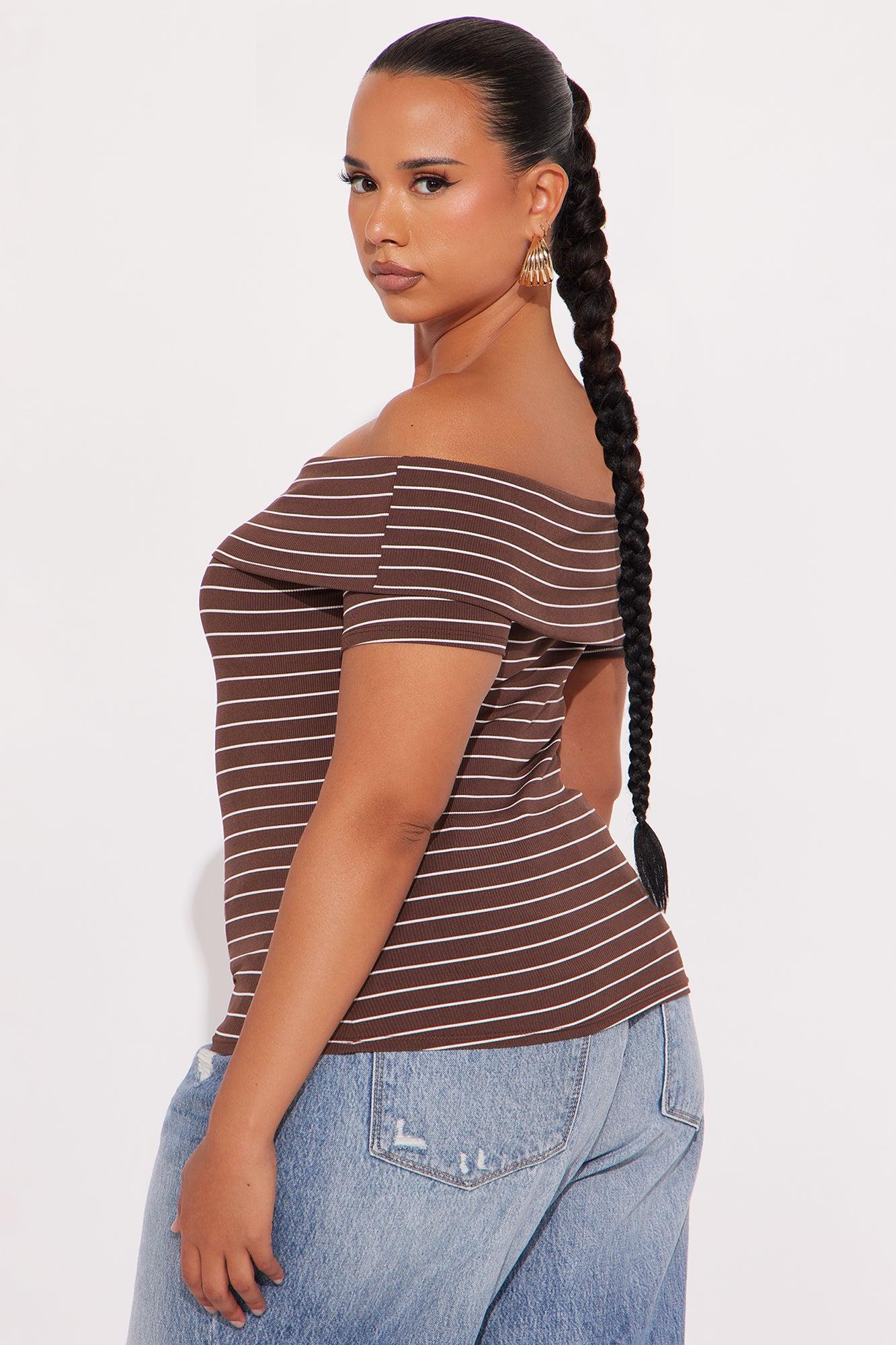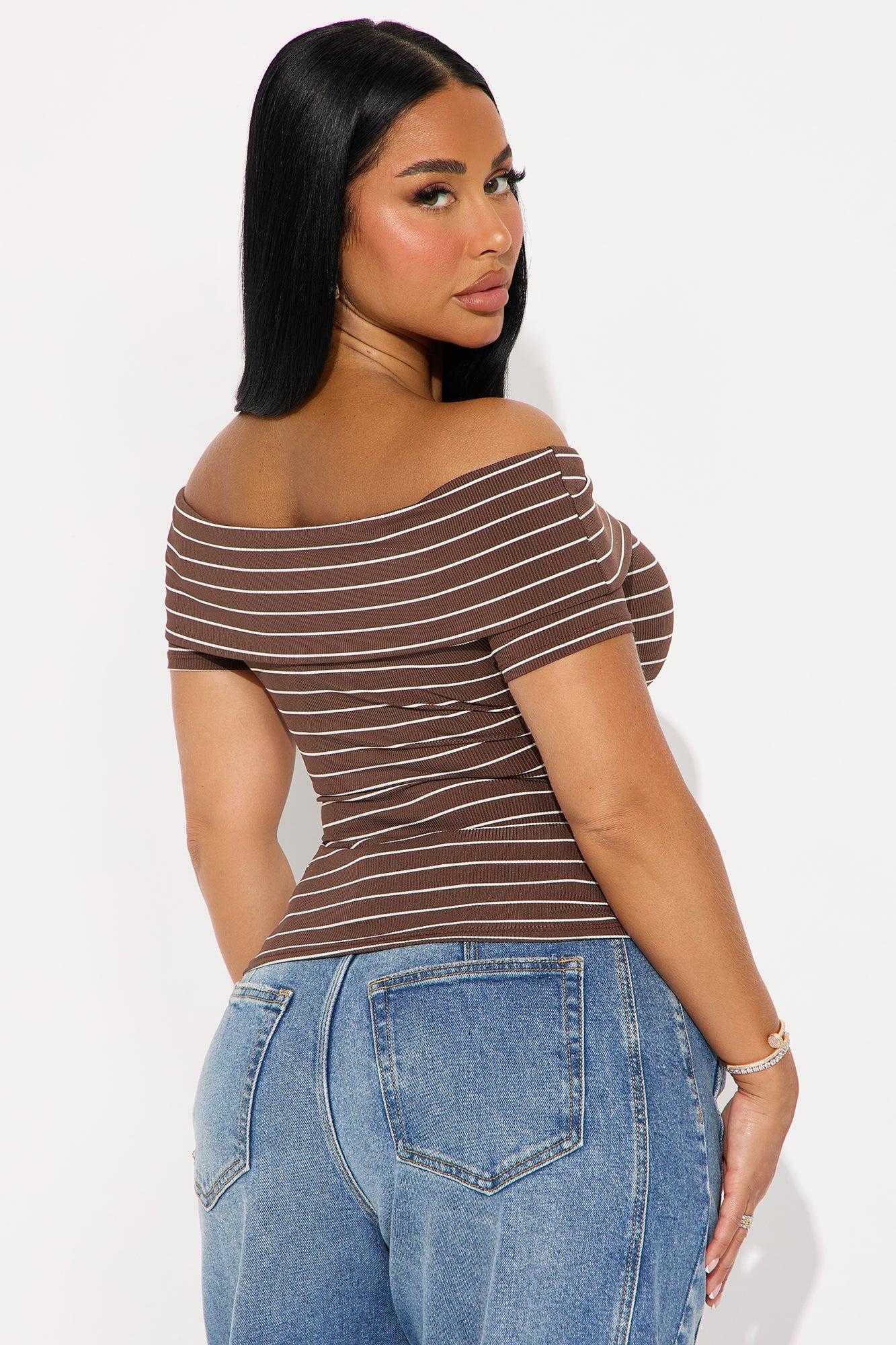 Cinnamon Off Shoulder Ribbed Top - Brown/combo Female