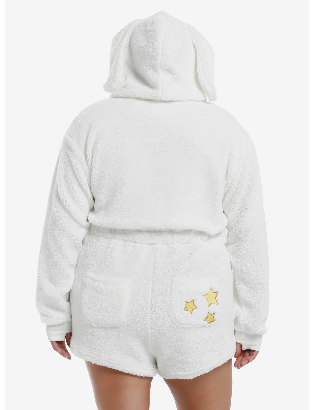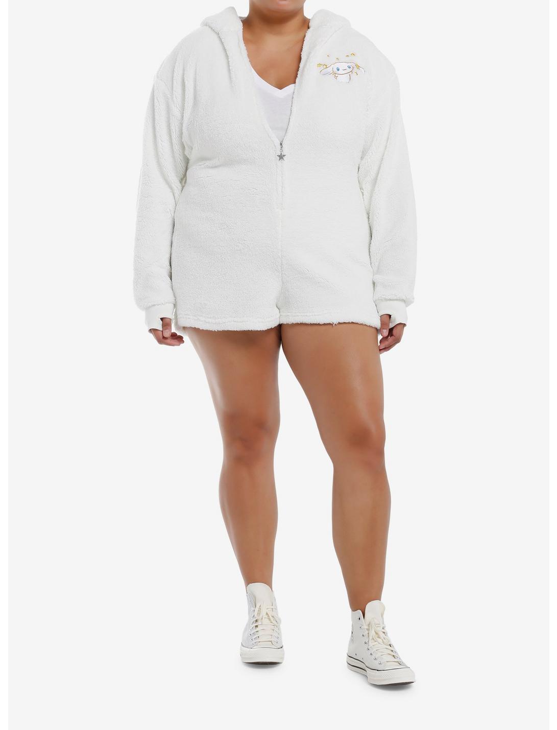 Look kawaii and feel as fluffy as a cloud with this dreamy Sanrio romper! Perfect for lounging, this fuzzy romper features Cinnamoroll embroidered on the chest and his face is on the hood, which has 3D ears. Comes with star embroidery on the back pocket, an elasticated waist and a zipper down the center chest.100% polyesterWash cold; dry lowImportedModel is 5'10"Model wears size 1