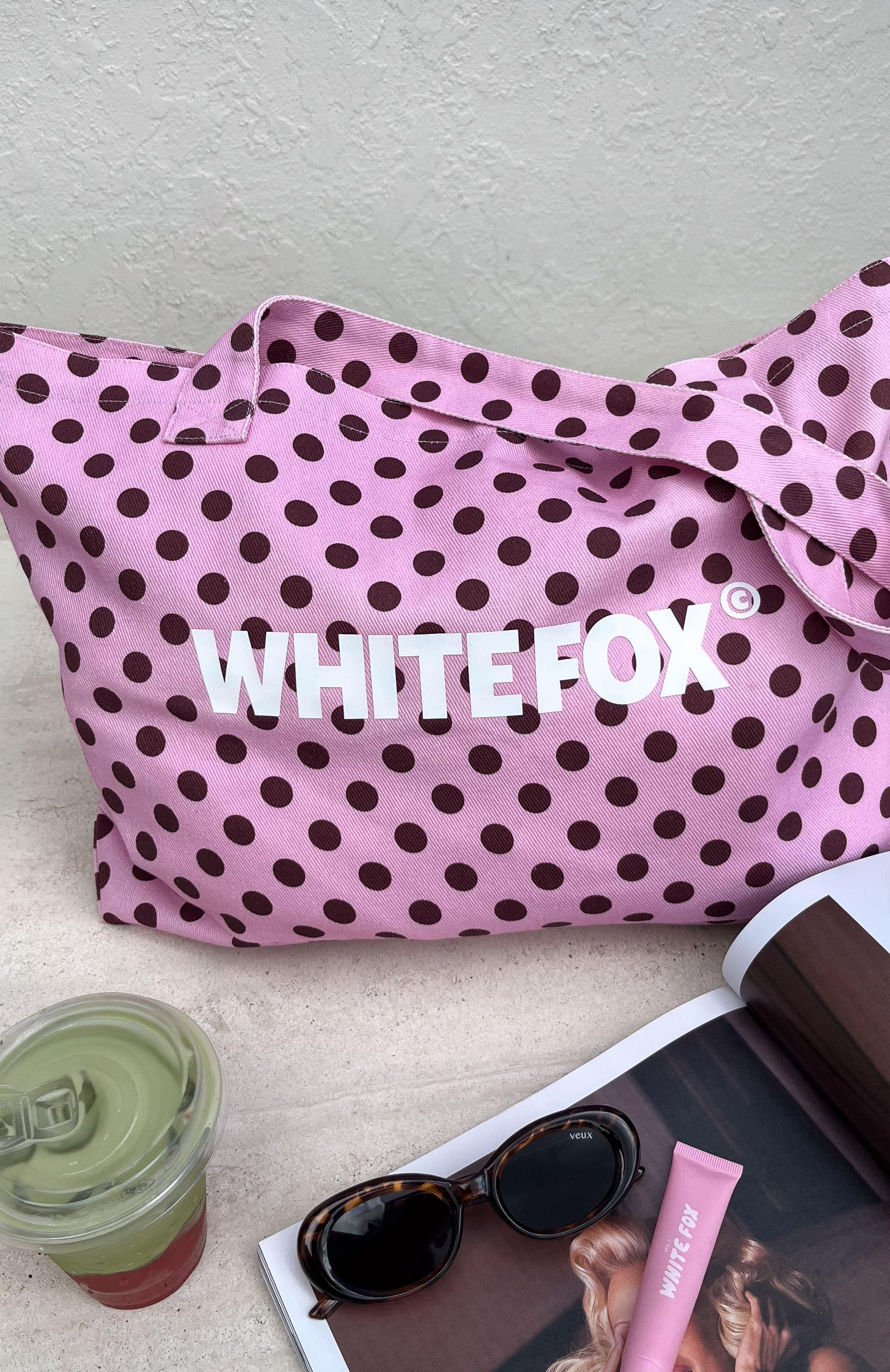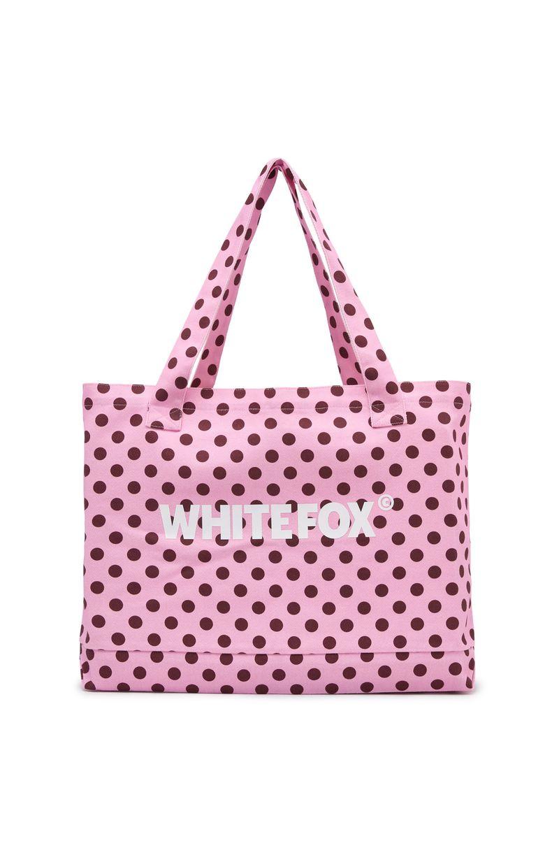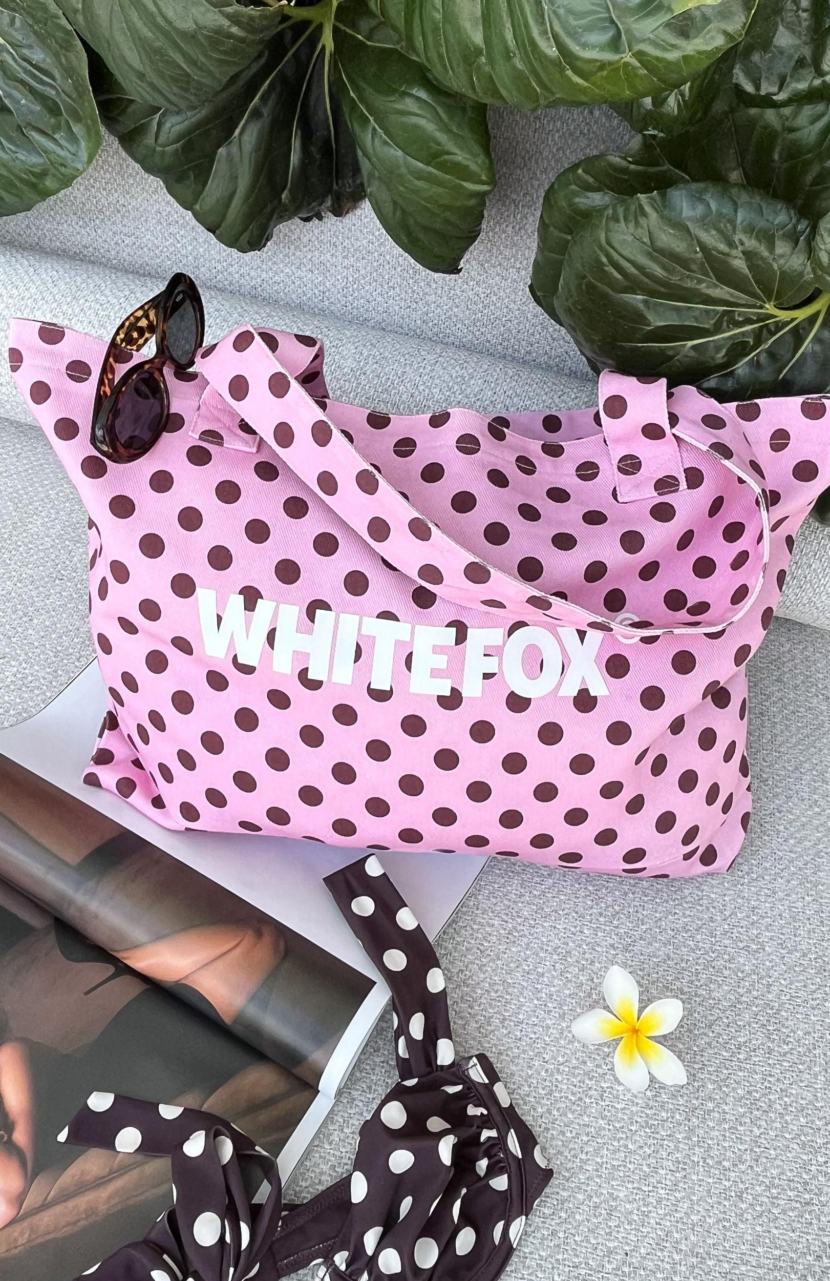 Get beach ready with the Circle Back To Me Tote Bag Pink/Burgundy Polka Dot. Features thick shoulder straps, light weight material and large sizing perfect for fitting all your summer essentials. Complete the look with any White Fox bikini for the perfect sun drenched day fit'.