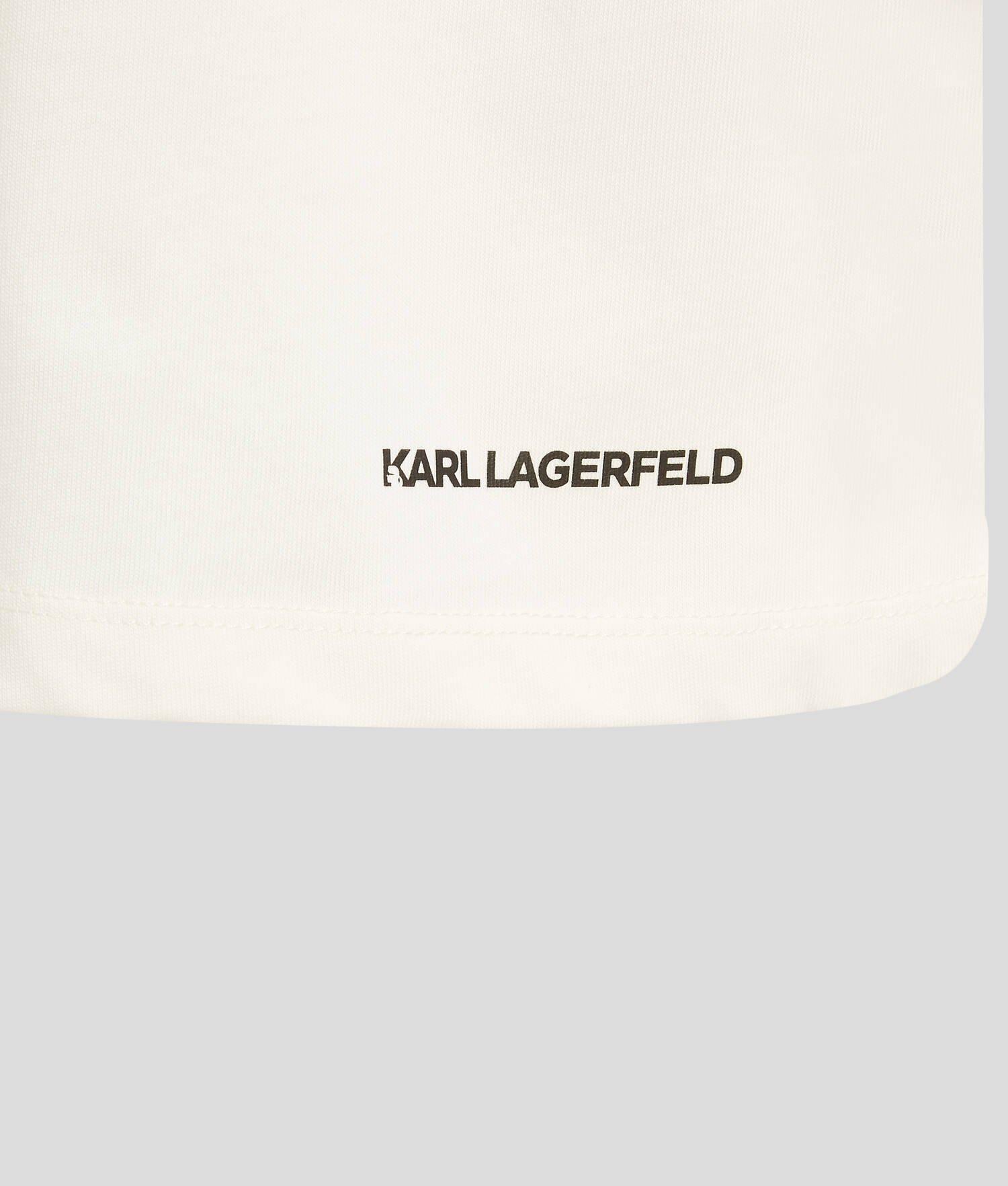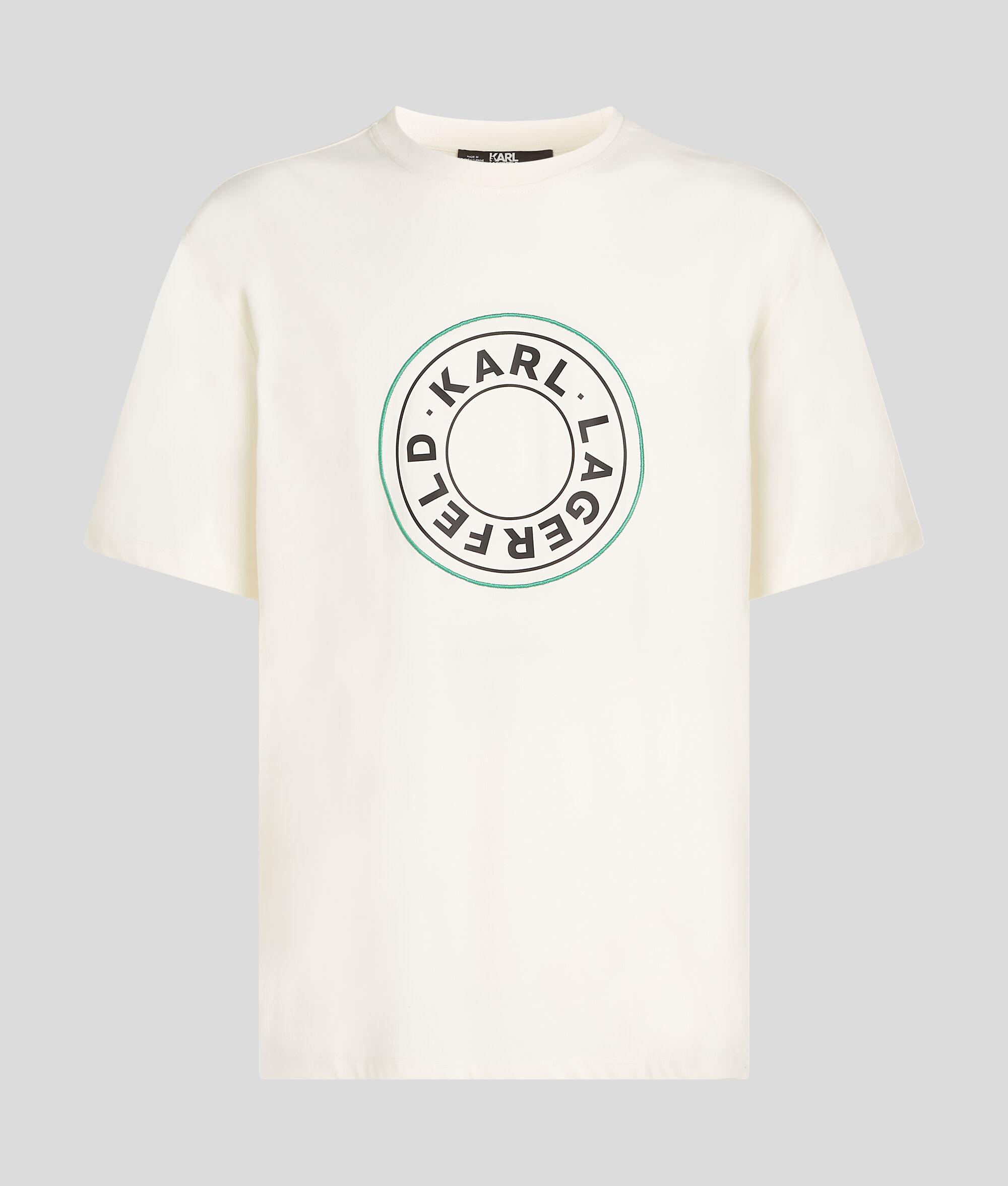 Statement style meets comfort in this mid-weight organic cotton T-shirt, featuring a ribbed crew neck and short sleeves, showcasing a graphic circular KARL LAGERFELD emblem.