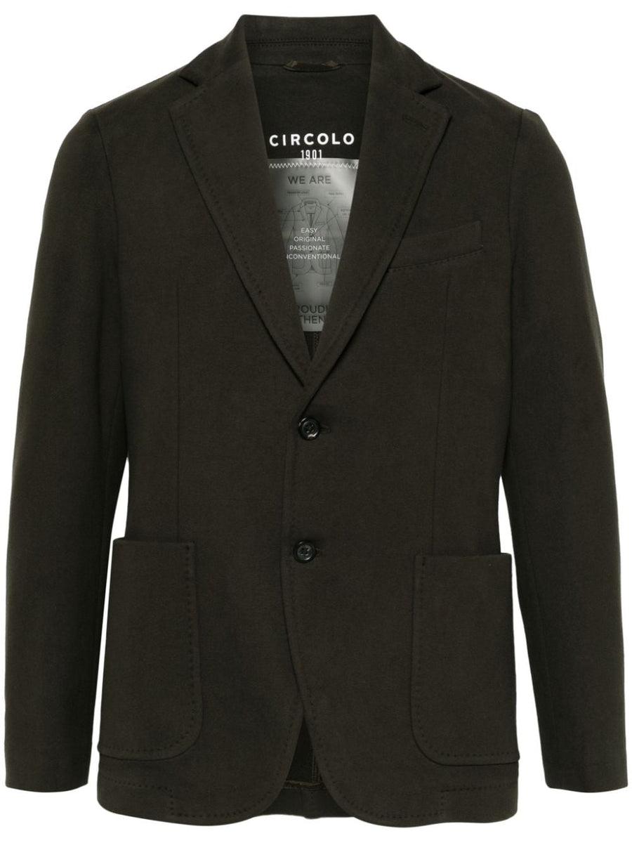 Details: Add some playfulness to your wardrobe with the quirky Circolo 1901 Single-Breasted Blazer Cashmere Touch. Made with a soft cotton blend and featuring a unique jersey texture, this blazer is perfect for any occasion. With a front button fastening, notched lapels, and dart detailing, it's both stylish and comfor