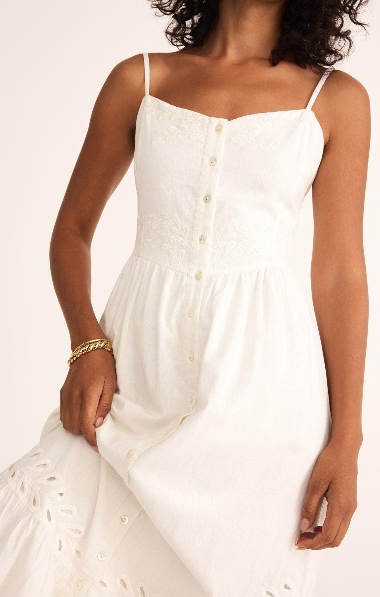 Soft and airy, this floral midi dress is the perfect mix of romantic and effortless. With ruching at the bodice, a bandeau neckline, and adjustable straps, it’s designed for the perfect fit.