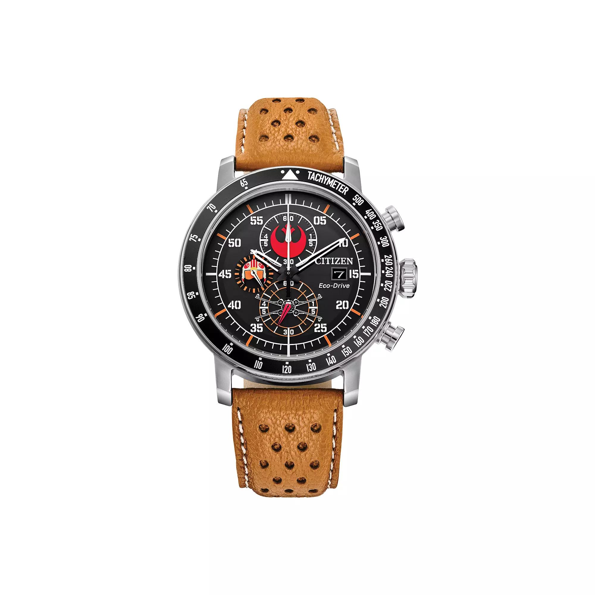 From Citizen, the Mens Star Wars Collection Rebel Pilot Chronograph Orange Leather Strap Watch features:Stainless steel caseSpherical mineral crystal black dialOrange leather strapStandard buckle12/24 hour timeChronograph movementCase size approx. 44mmWater resistance: 10 ATMImported.