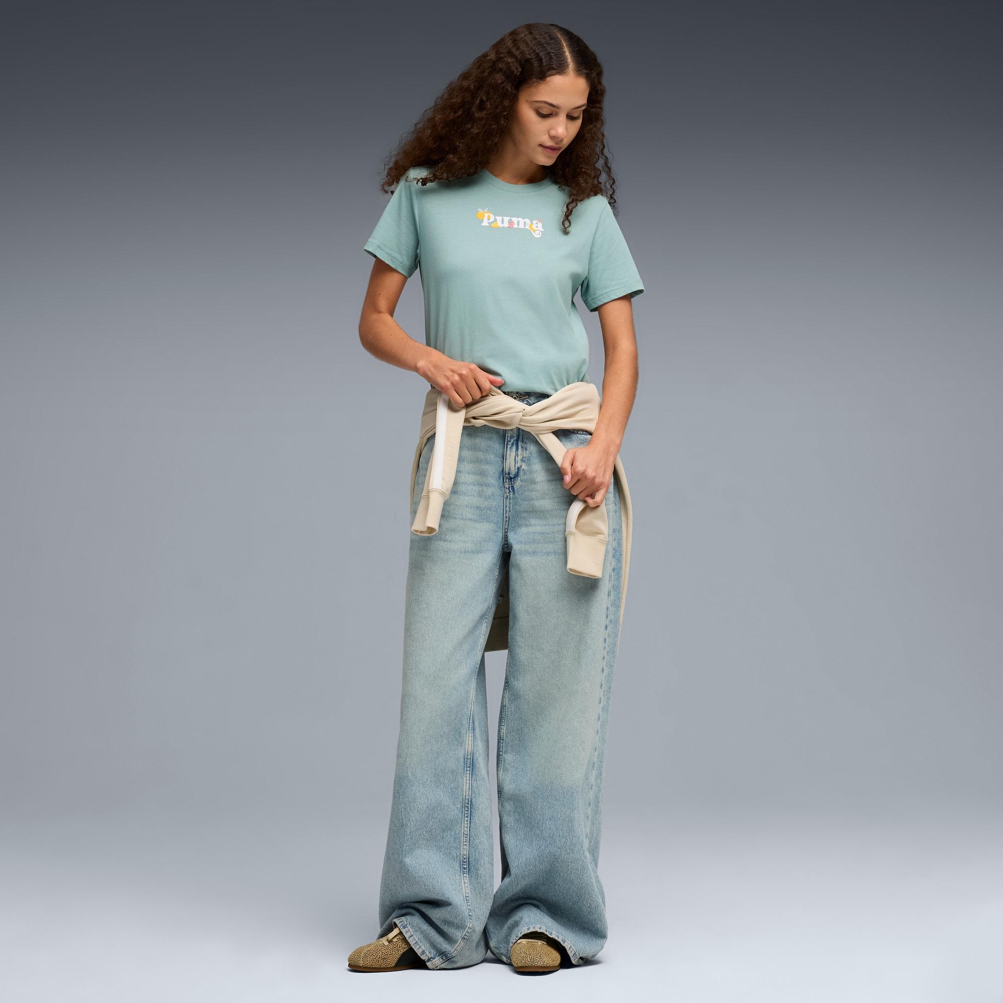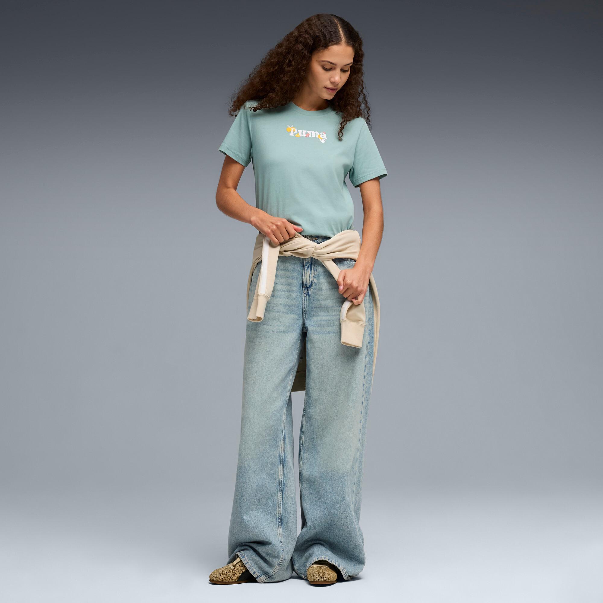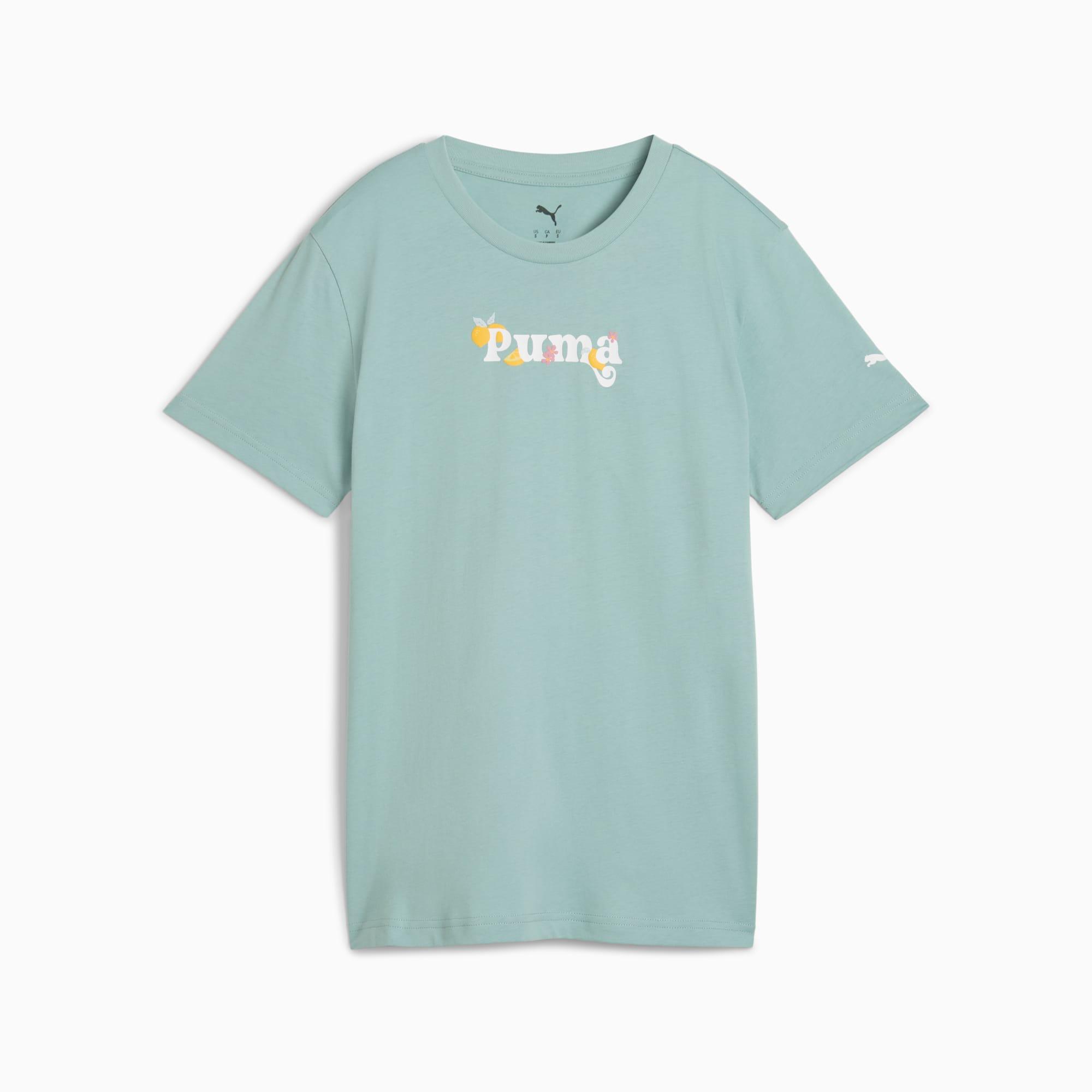 Bring bold energy to your everyday look with this regular-fit tee. Made with a chest graphic and soft jersey fabric, it's perfect for relaxed outings or casual hangouts. Pair it with joggers or jeans, and let PUMA's sporty vibe shine through. Ready for anything, always. FEATURES & BENEFITS Made with at least 20% recycled materials Fit: ComfortMain Material: Single jerseyNeck: CrewShort sleeves | PUMA Citrus Women's T-Shirt in Green, Size L