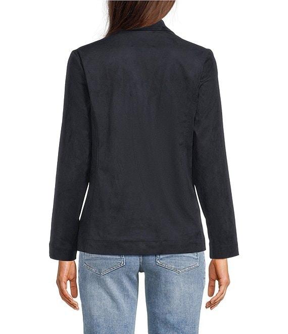 From City Blues, this blazer features: Knit fabrication Notch lapel collar Long sleeves Relaxed fit Front pockets Straight hem Two button-front closure Approx. 27" length Polyester/spandex Hand wash cold Imported.