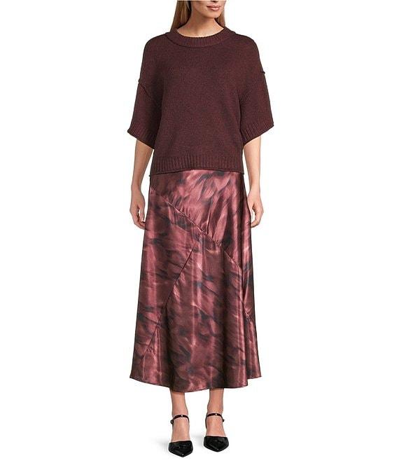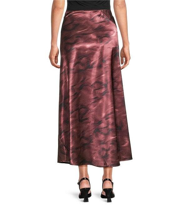 City Blues Savoy Bias Charmeuse Satin Brushstroke Print A-Line Pull-On Maxi Skirt