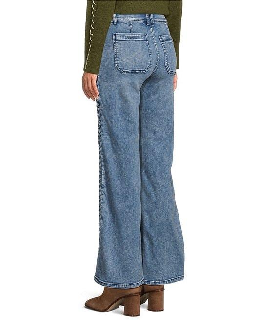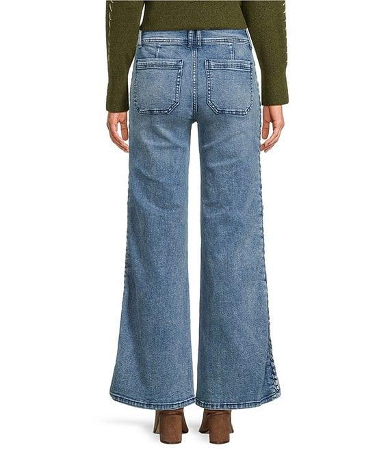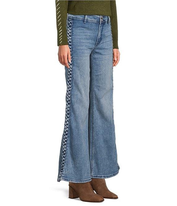 From City Blues these jeans feature: Denim fabrication Wide leg 5-pocket styling Braid seam on leg Clean hem Button front/zip fly closure Approx. 31" inseam, 16" leg opening,10.625" front, back rise 15.25" Cotton/spandex Machine wash Imported.