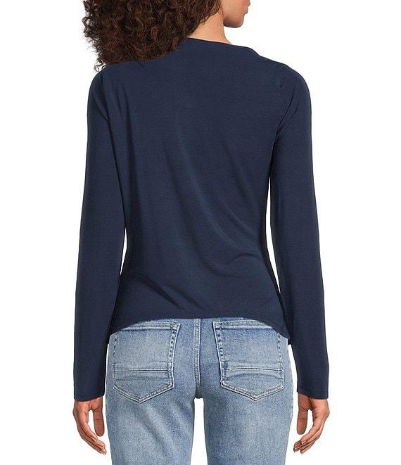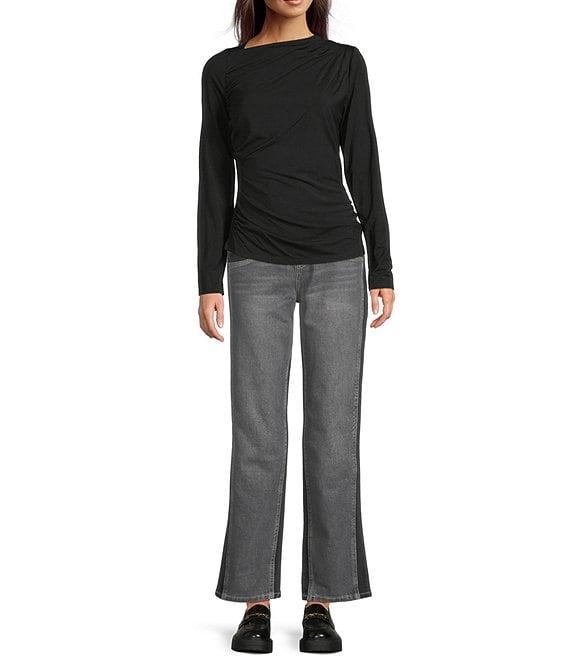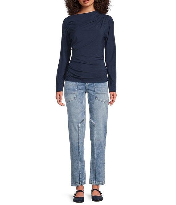 City Blues Stretch Modal Asymmetrical Neck Long Sleeve Ruched Top
