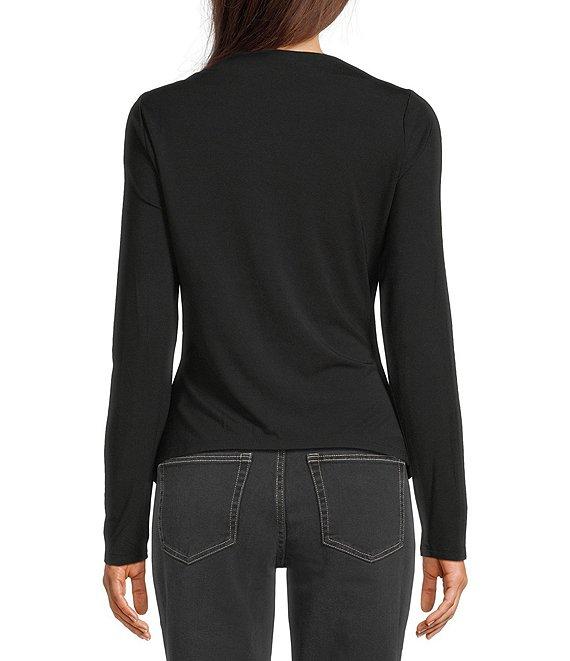 From City Blues, this top features: Asymmetrical neckline Long sleeves Ruched detail Straight hemline Pullover construction Approx. 18.25" length Modal/spandex Machine wash Imported.