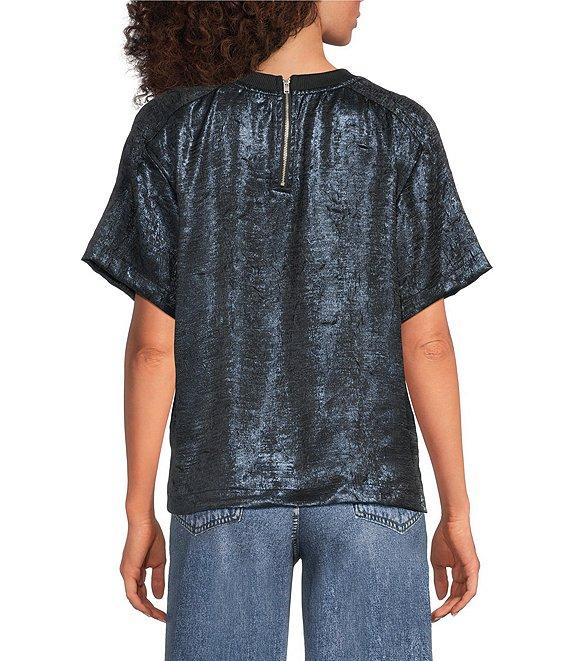 City Blues Woven Tie-Dye Crew Neck Short Sleeve Zip Back T-Shirt