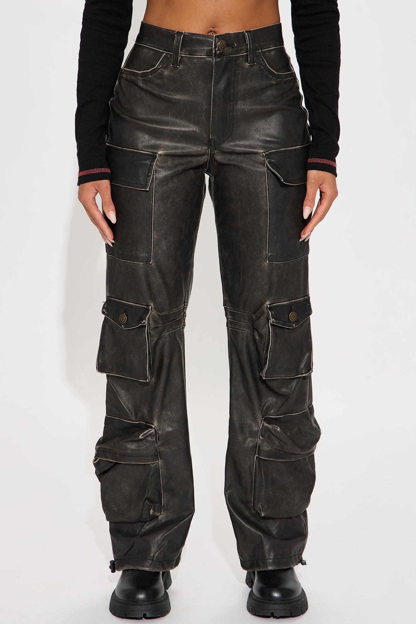 City Is Mine Washed Faux Leather Cargo Pant - Black Female