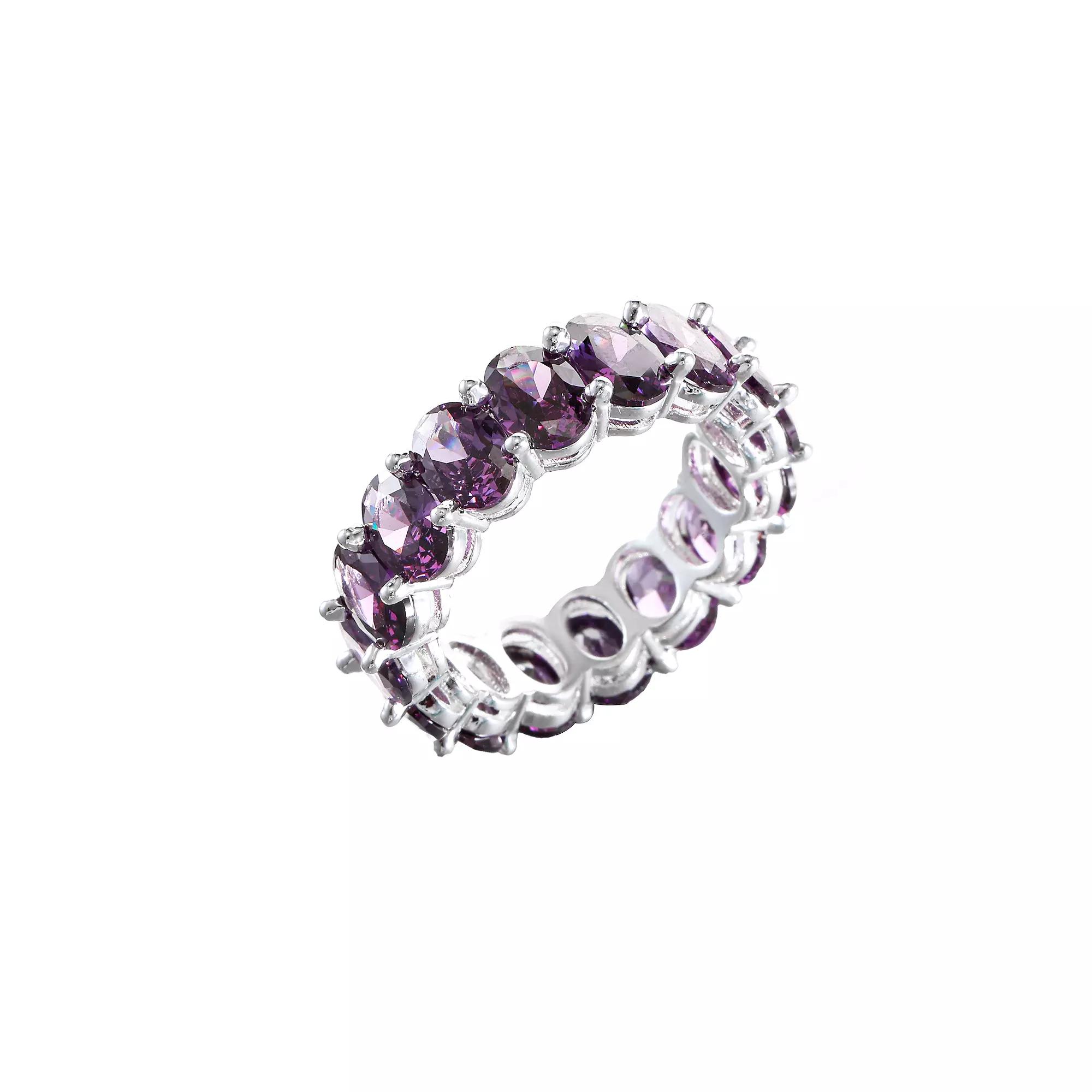 Give your jewelry box an elegant refresh with this City Luxe crystal eternity band ring. Click on this JEWELRY & WATCHES GUIDE to learn about fit, styles, materials and more! Give your jewelry box an elegant refresh with this City Luxe crystal eternity band ring. Click on this JEWELRY & WATCHES GUIDE to learn about fit, styles, materials and more! FEATURES Band width: 7 mm Shank style: straight Band fit: flat Nickel free Metal: brass Finish: polished Packaging: boxed Imported Size: 8. Color: February. Gender: female. Age Group: adult.