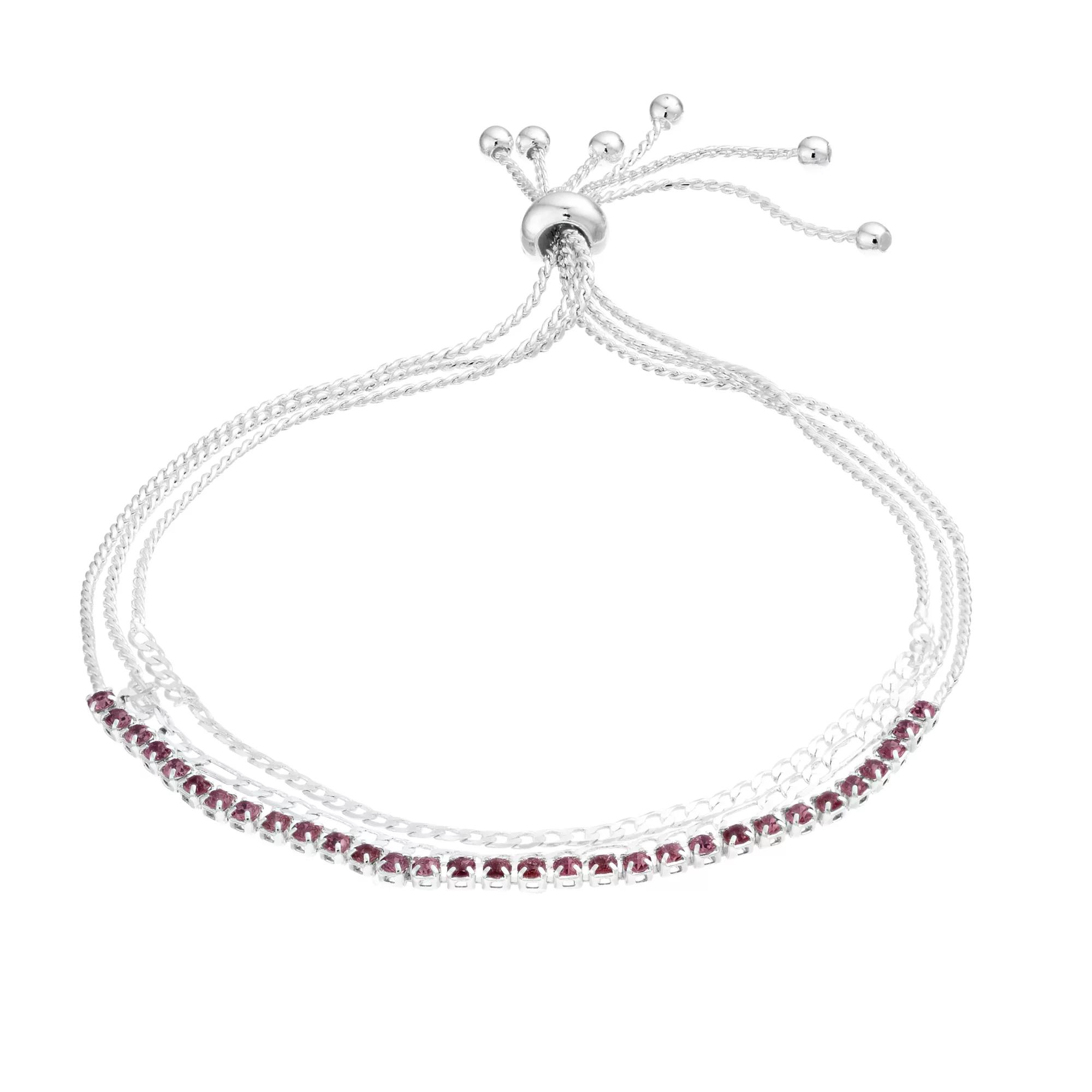 Sparkling crystals in the color of your birthstone accent this lovely multi-strand City Luxe adjustable chain bracelet, the perfect way to add a little shimmer to any outfit. Sparkling crystals in the color of your birthstone accent this lovely multi-strand City Luxe adjustable chain bracelet, the perfect way to add a little shimmer to any outfit. BRACELET DETAILS Length: 9.75 in. Clasp: slider bead Metal: brass Packaging: boxed Finish: polished Additional details: crystal accents Size: One Size. Color: Purple. Gender: female. Age Group: adult.