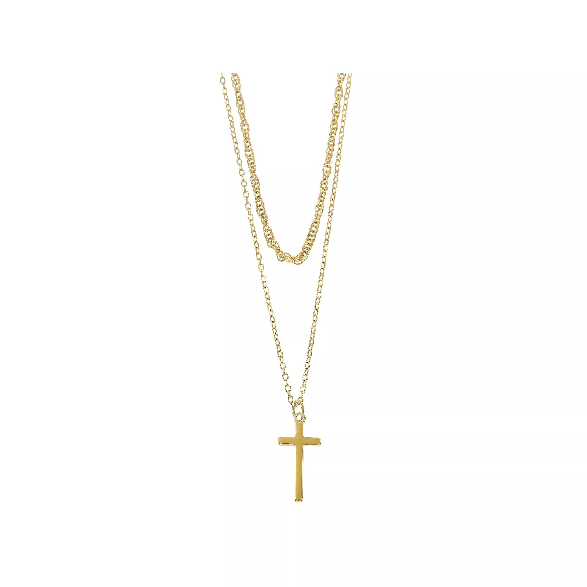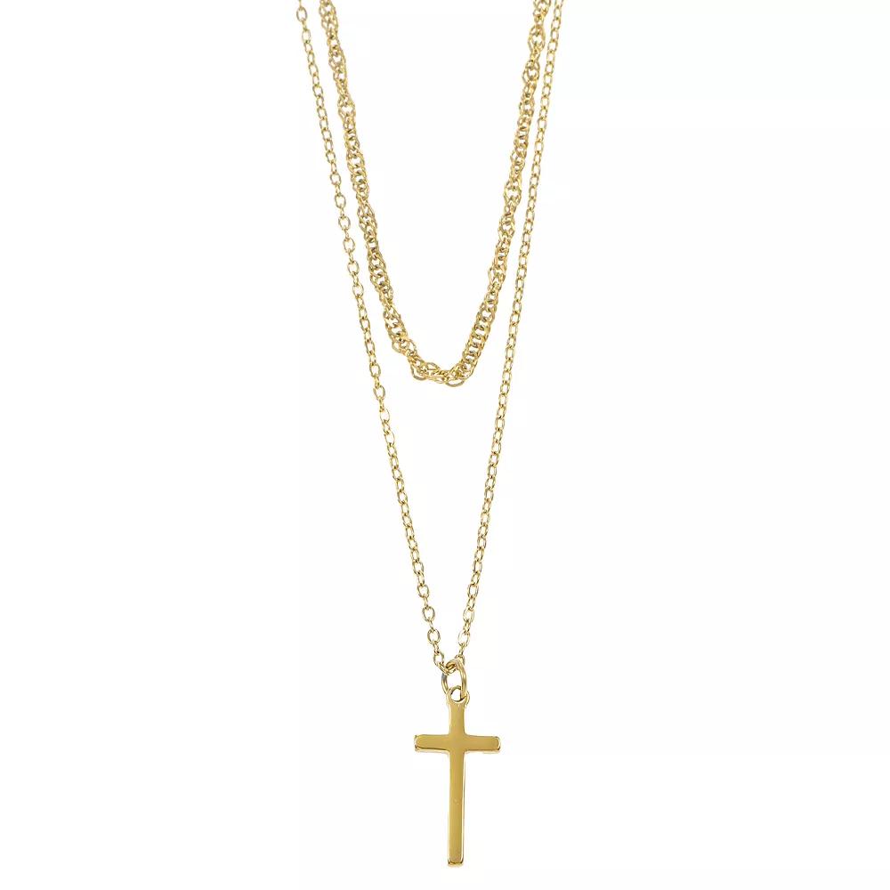 Accessorize in style with this City Luxe gold tone cross duo chain necklace. Click on this JEWELRY & WATCHES GUIDE to learn about fit, styles, materials and more! Accessorize in style with this City Luxe gold tone cross duo chain necklace. Click on this JEWELRY & WATCHES GUIDE to learn about fit, styles, materials and more! FEATURES Shortest chain length: 16 in. Longest chain length: 18 in. Chain type: cable, Singapore Clasp: lobster-claw Nickel free Metal: stainless steel Plating: gold tone Finish: polished Packaging: boxed Size: 16/18+3". Gender: female. Age Group: adult.