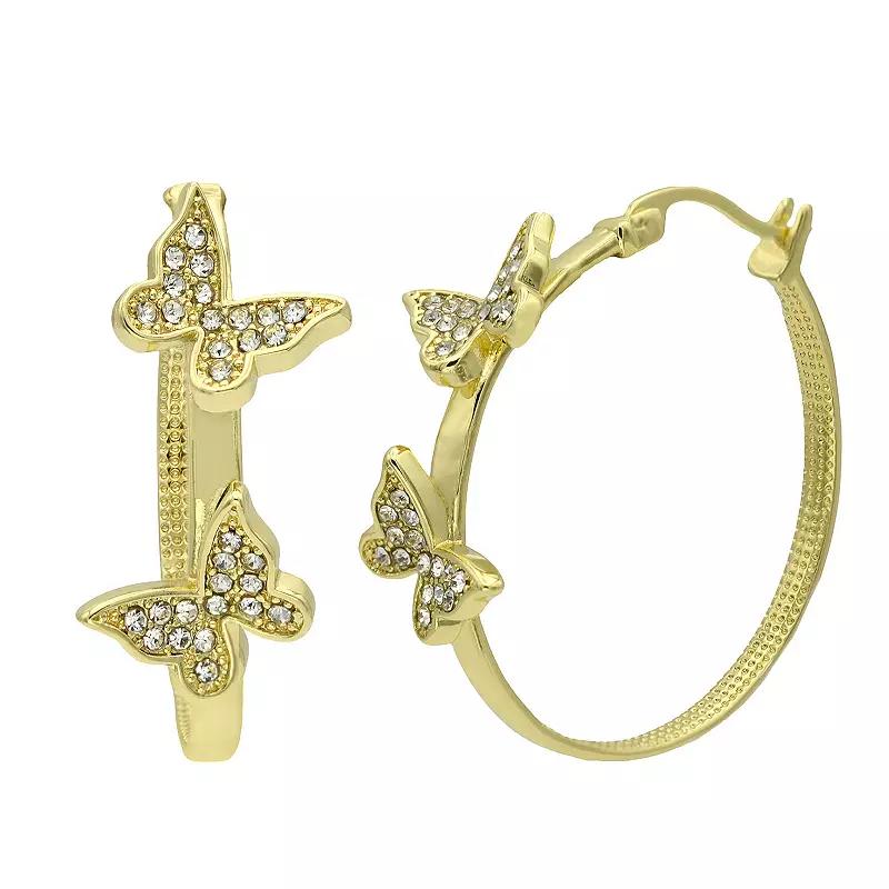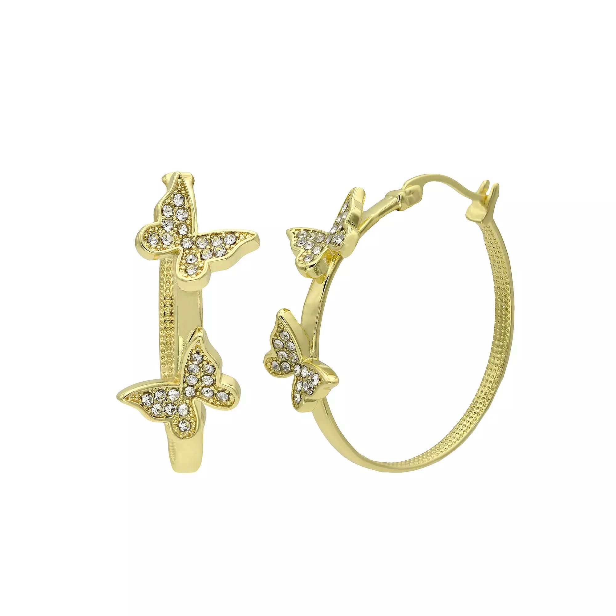 Add a touch of sweetness to your wardrobe with these crystal-studded gold tone City Luxe butterfly hoop earrings. Click on this JEWELRY & WATCHES GUIDE to learn about fit, styles, materials and more! Add a touch of sweetness to your wardrobe with these crystal-studded gold tone City Luxe butterfly hoop earrings. Click on this JEWELRY & WATCHES GUIDE to learn about fit, styles, materials and more! FEATURES Length: 31.64 mm Backings: click-it Nickel free Metal: brass Plating: gold tone Finish: polished Packaging: boxed Size: One Size. Color: White. Gender: female. Age Group: adult.